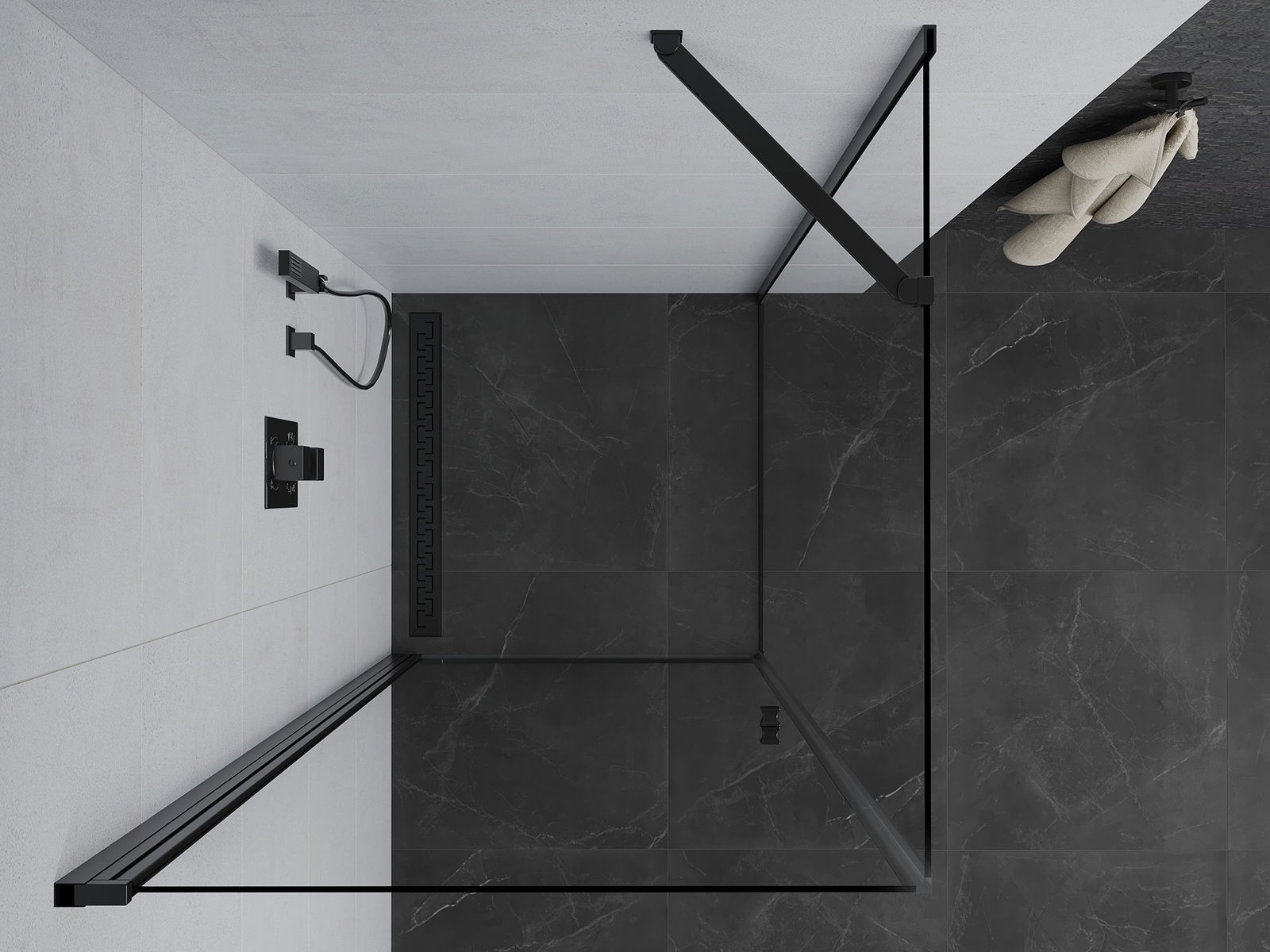 Η πρακτική και άνετη λαβή κατασκευάζεται από ανθεκτικό και αντοχής μέταλλο. Ο μοντέρνος σχεδιασμός σε συνδυασμό με το φινίρισμα που ταιριάζει με το χρώμα των προφίλ προσδίδει στο σύνολο μια σύγχρονη και κομψή εμφάνιση, τονίζοντας την αισθητική κάθε μπάνιου.