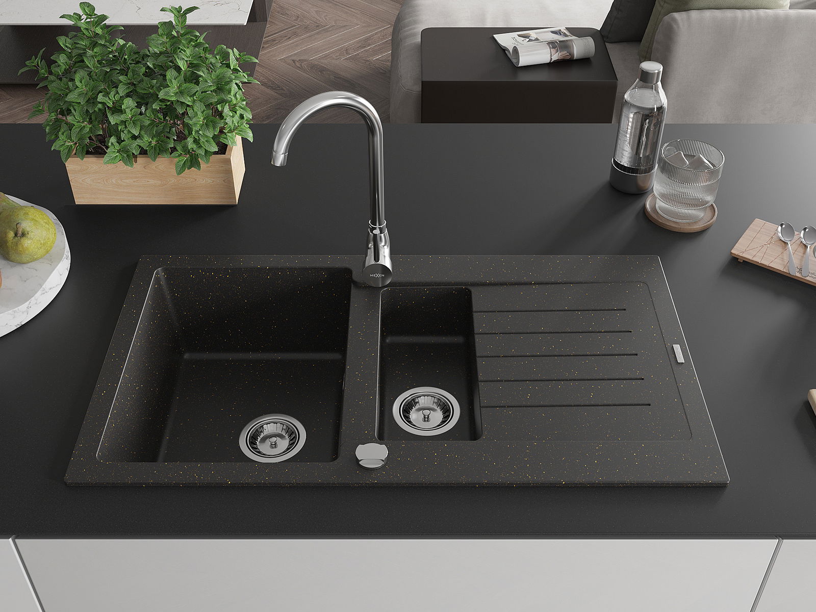 Mexen Matias νεροχύτης από γρανίτη 1,5 θαλάμων με επιφάνεια αποστράγγισης 900