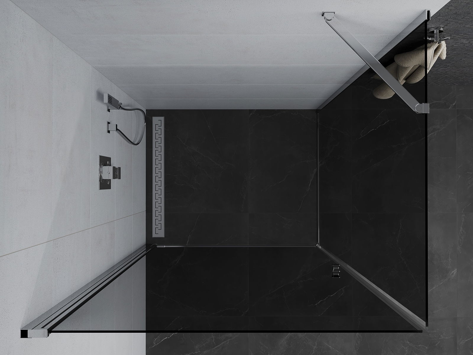 Η πρακτική και άνετη λαβή κατασκευάζεται από ανθεκτικό και αντοχής μέταλλο. Ο μοντέρνος σχεδιασμός σε συνδυασμό με το φινίρισμα που ταιριάζει με το χρώμα των προφίλ προσδίδει στο σύνολο μια σύγχρονη και κομψή εμφάνιση, τονίζοντας την αισθητική κάθε μπάνιου.