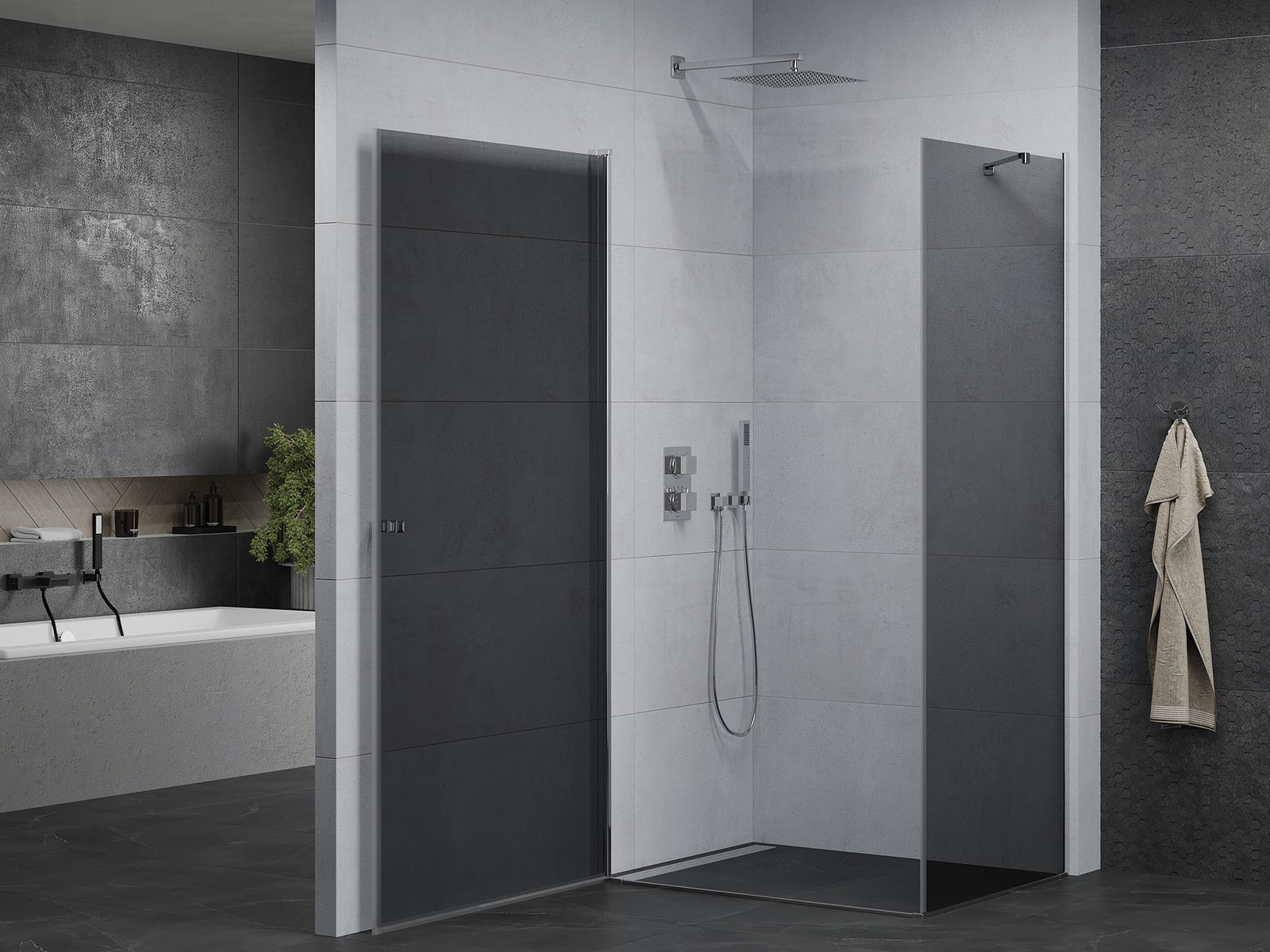 Χάρη στη χρήση ενός καθολικού συστήματος στήριξης, οι πόρτες ντους μπορούν να τοποθετηθούν είτε από τη δεξιά είτε από την αριστερή πλευρά, ανάλογα με τις ανάγκες. Έτσι μπορείτε να σχεδιάσετε με ευκολία ένα ντους προσαρμοσμένο στον χώρο του μπάνιου.
