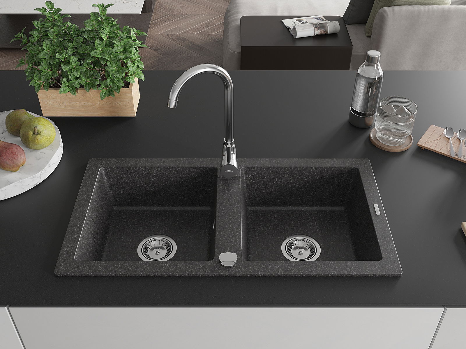 Mexen Mario νεροχύτης γρανίτης 2 διαμερισμάτων 820 x 436 mm, μαύρος με κηλίδες,
