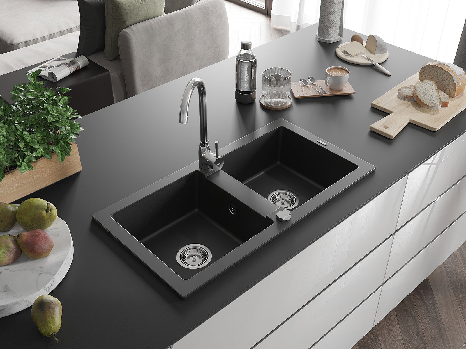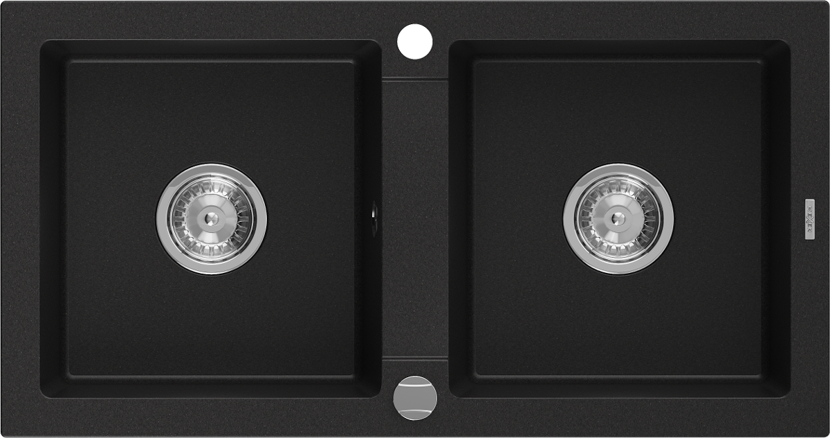Mexen Mario νεροχύτης γρανίτη 2 θαλάμων 820 x 436 mm, μαύρος, σιφόνι χρωμίου