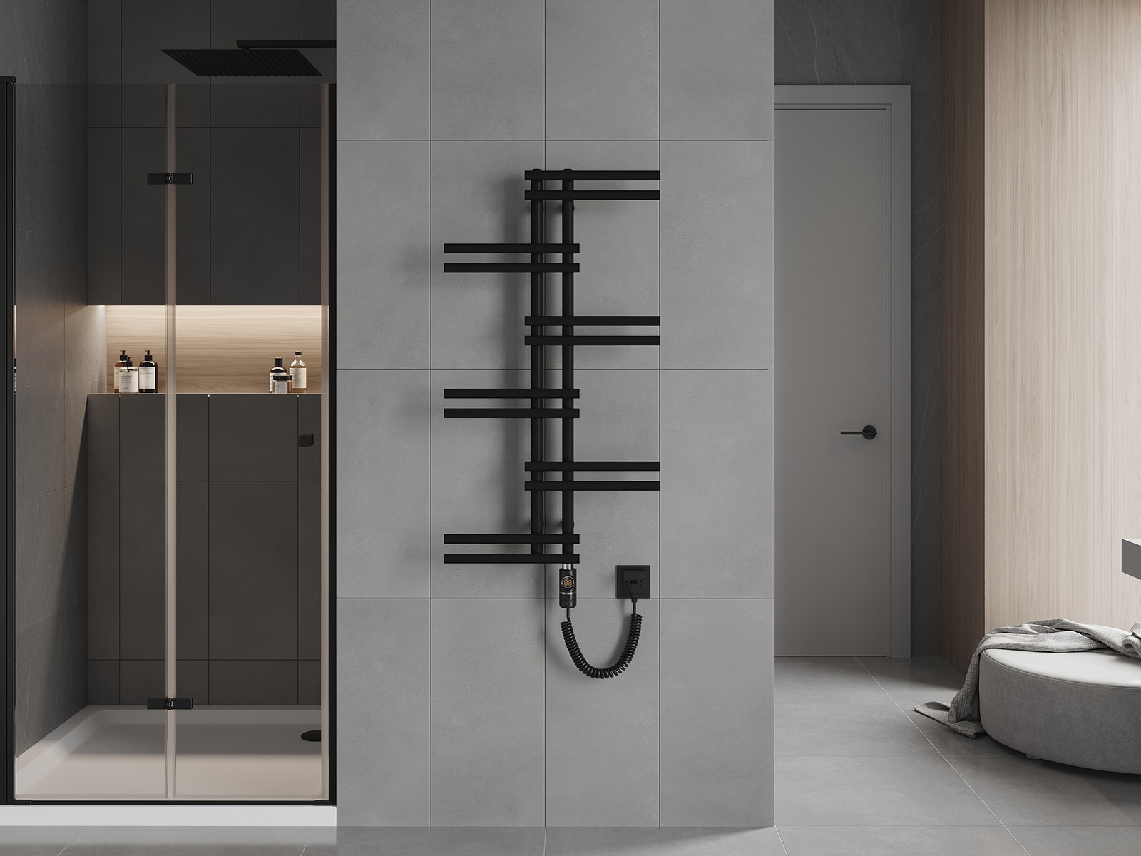Το ηλεκτρικό καλοριφέρ Mexen Jari προσφέρει εξαιρετικό συνδυασμό λειτουργικότητας και στιλ χάρη στη μαύρη χαλύβδινη κατασκευή με διαστάσεις 1005 x 550 mm. Η συσκευή έχει ισχύ 300 W και 12 θερμαντικές ράβδους, παρέχοντας αποτελεσματική θέρμανση δωματίου. Το καλοριφέρ είναι εξοπλισμένο με οθόνη αφής LED και θερμοστάτη που διατηρεί την επιθυμητή θερμοκρασία. Επιπλέον, η λειτουργία Sensitive επιτρέπει την προσαρμογή της θερμοκρασίας από 40°C έως 65°C, και η λειτουργία Comfort επιτρέπει το στέγνωμα σε επιλεγμένη ώρα. Οι συσχετισμοί προστασίας, όπως η προστασία IP44 και η παιδική κλειδαριά, εγγυώνται ασφαλή χρήση. Το σετ περιλαμβάνει όλα τα στοιχεία εγκατάστασης, διευκολύνοντας την εγκατάσταση.