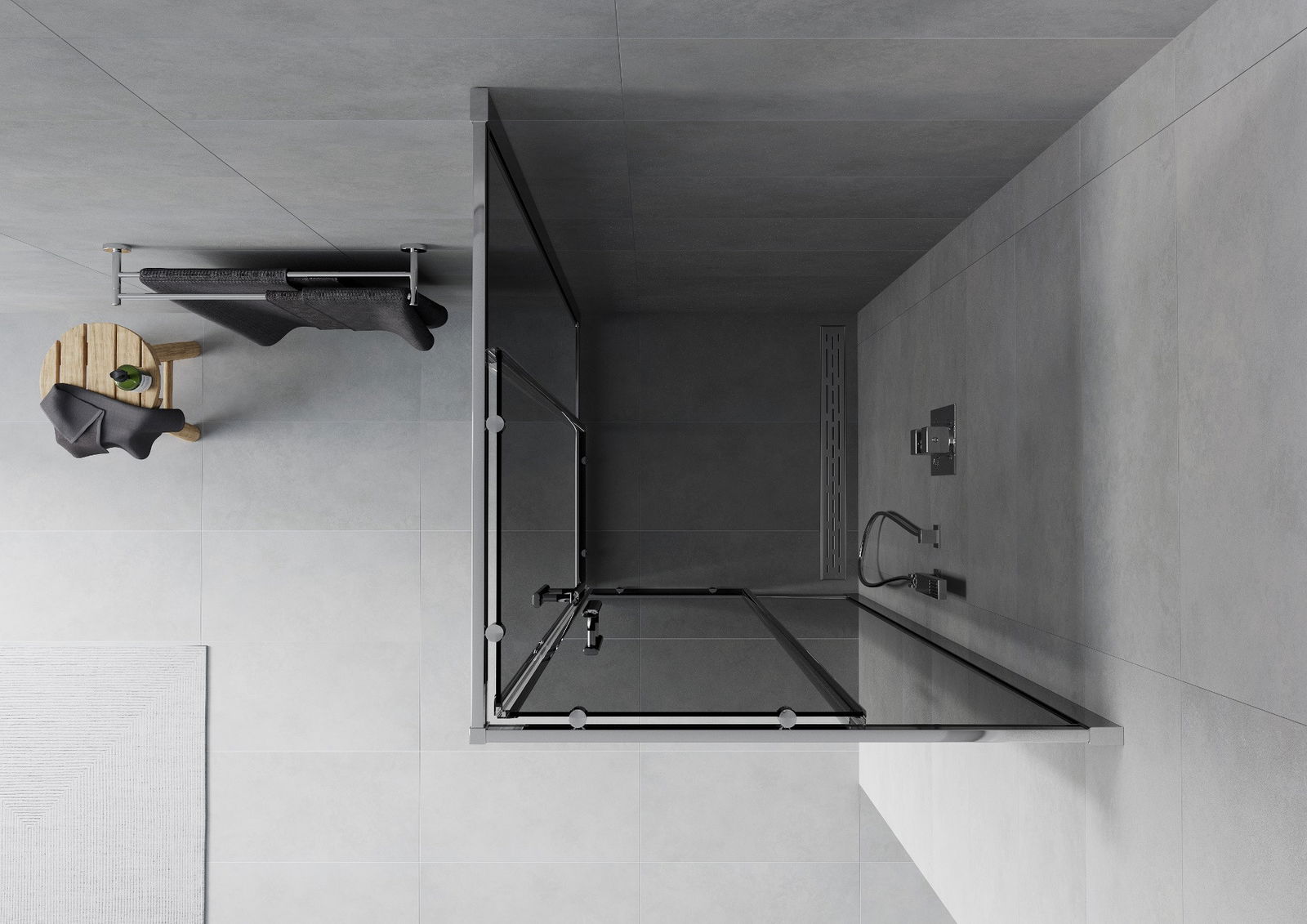 Mexen Rio τετράγωνη καμπίνα ντους 80 x 80 εκ., γραφίτης, χρώμιο - 860-080-080-01-40