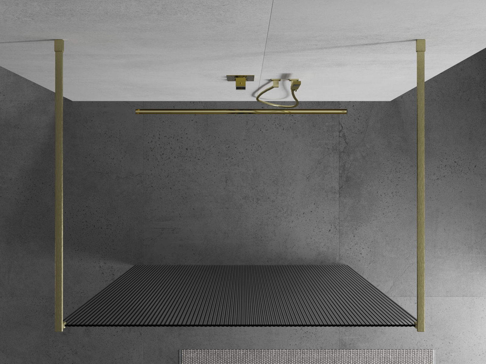Mexen Kioto ελεύθερος τοίχος ντουζ 130 x 200 cm, ριγέ 8 mm, βουρτσισμένο χρυσό