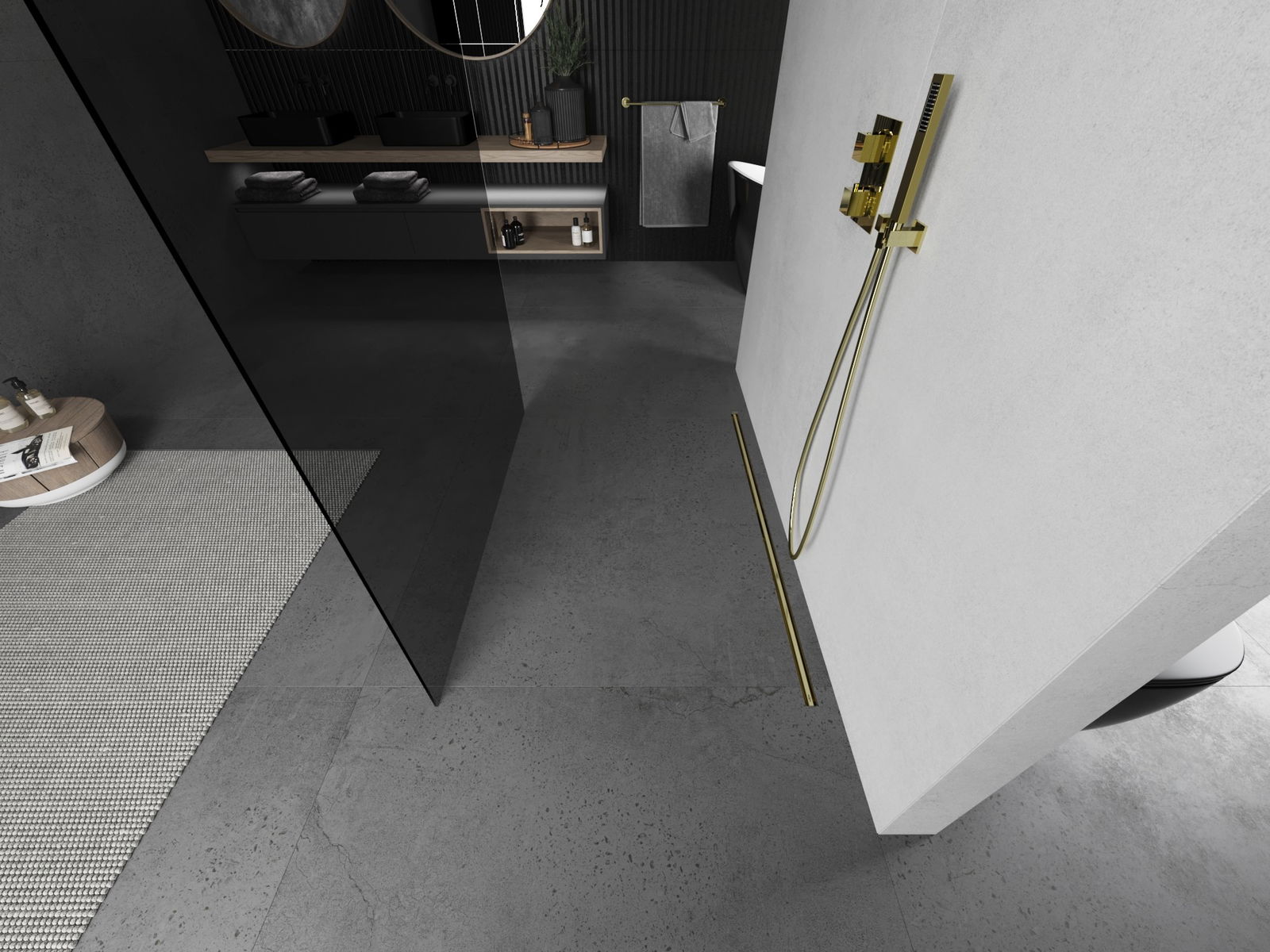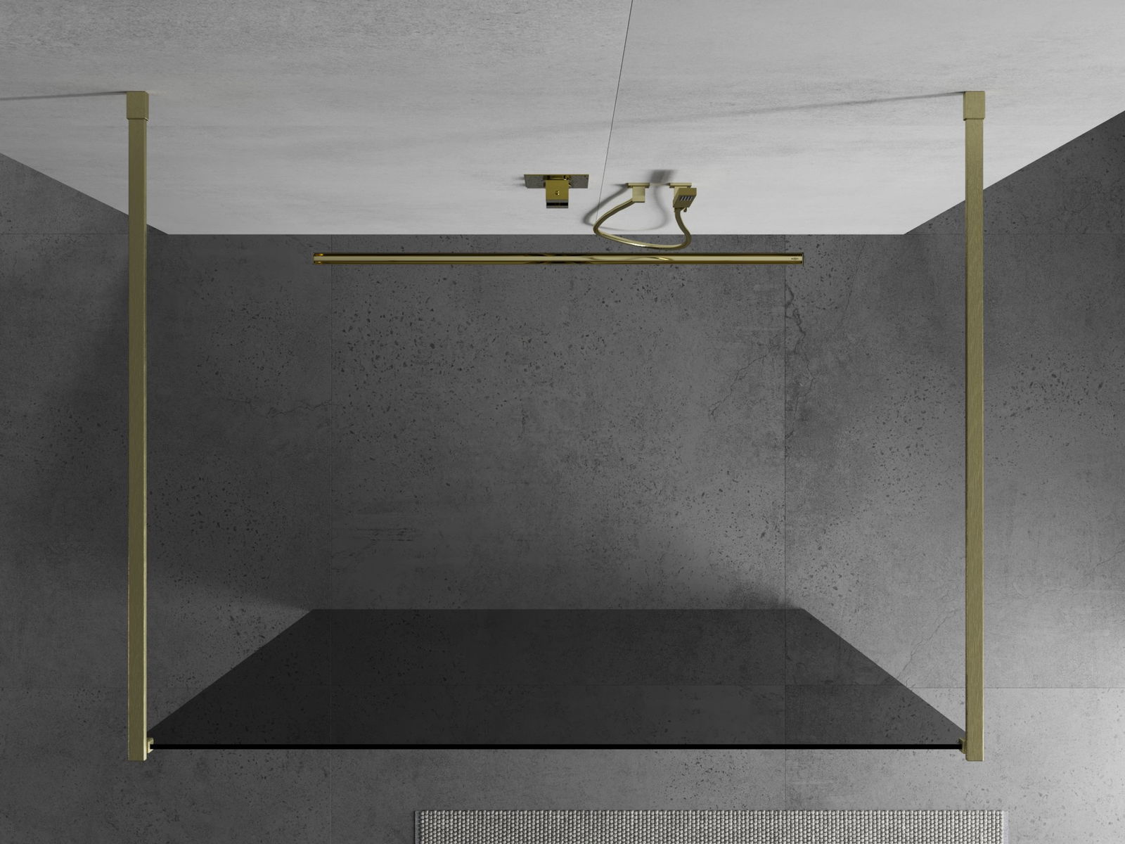Mexen Kioto ελεύθερη οθόνη ντουζιέρας 100 x 200 cm, γκρί 8 mm, βουρτσισμένο χρυσό
