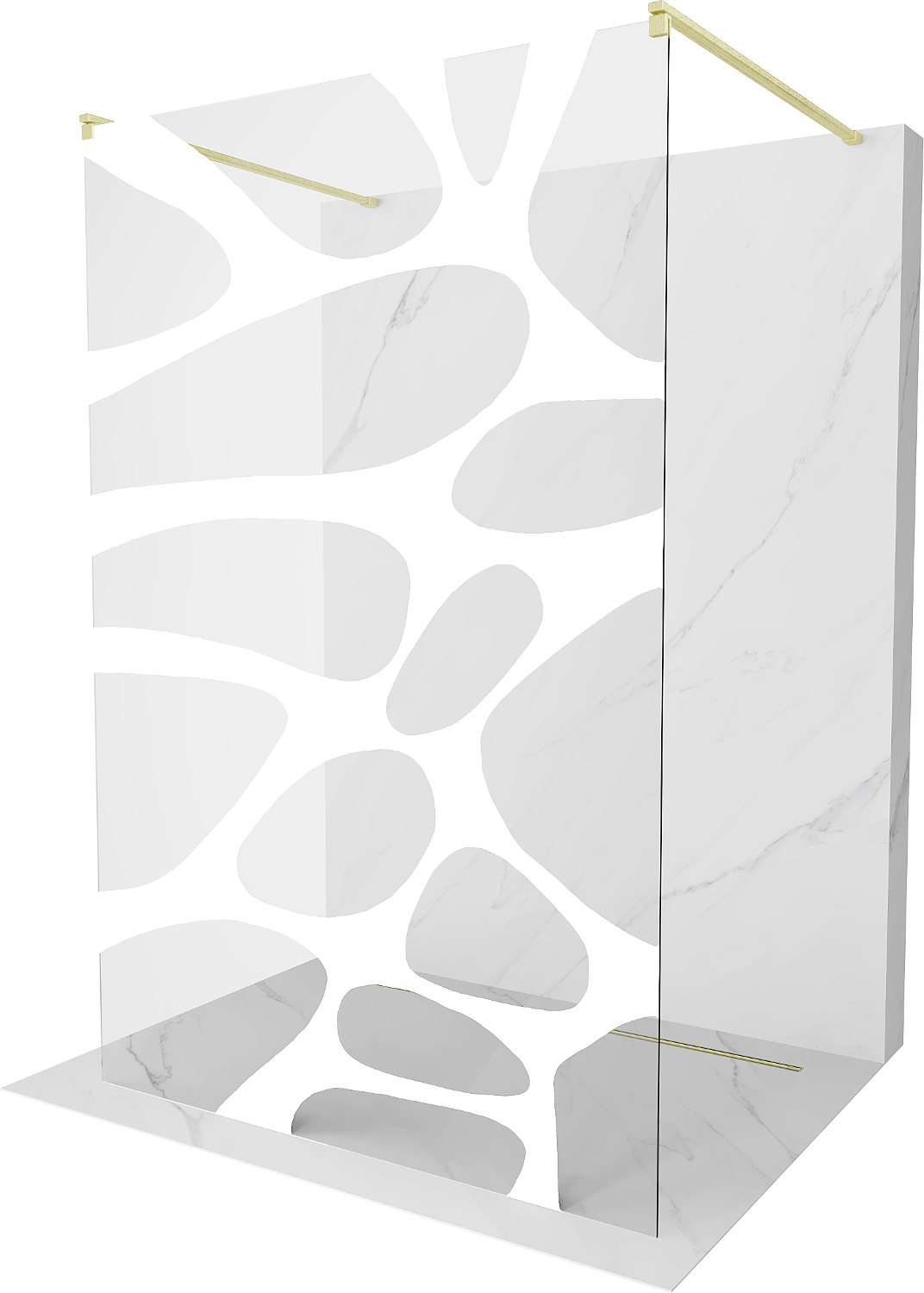 Mexen Kioto ελεύθερος τοίχος ντους 130 x 200 cm, λευκό κύμα 8 mm, χρυσό