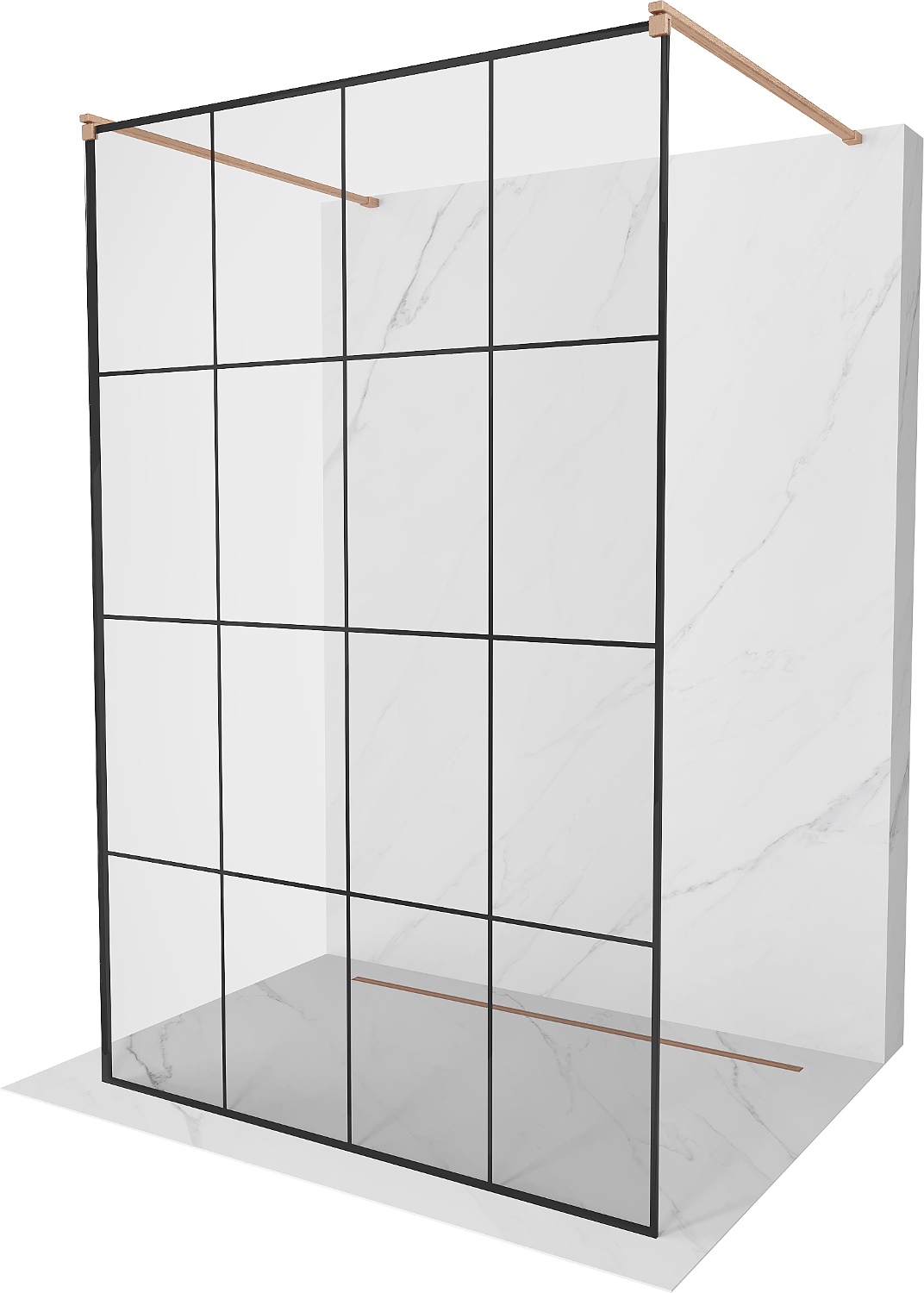 Mexen Kioto ελεύθερη βάση ντους 140 x 200 cm, μαύρο πλέγμα 8 mm, βουρτσισμένος