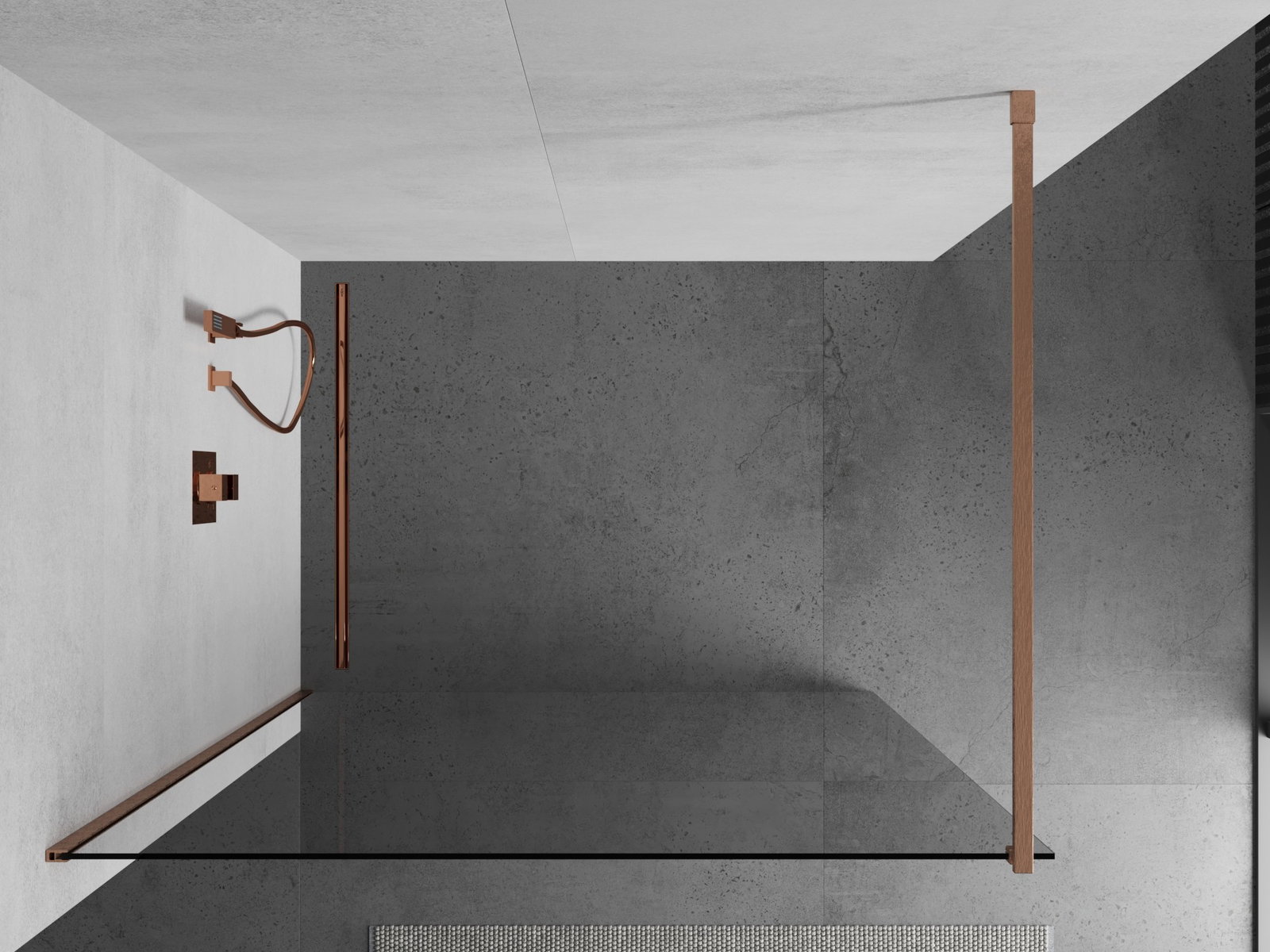 Mexen Kioto Πάνελ ντους Walk-in 125 x 200 cm, διάφανο 8 mm, βουρτσισμένος χαλκός
