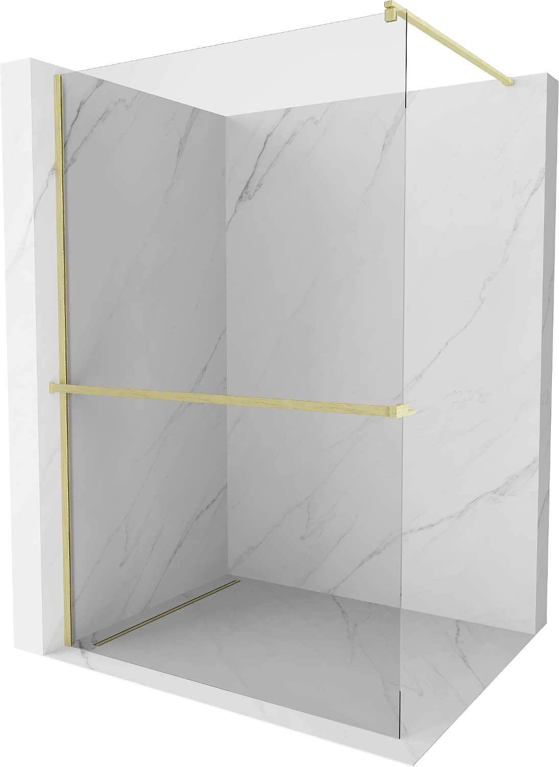 Mexen Kioto+ Πάνελ ντους με ράφι Walk-in 120 x 200 cm, διαφανές, σε χρυσό ματ