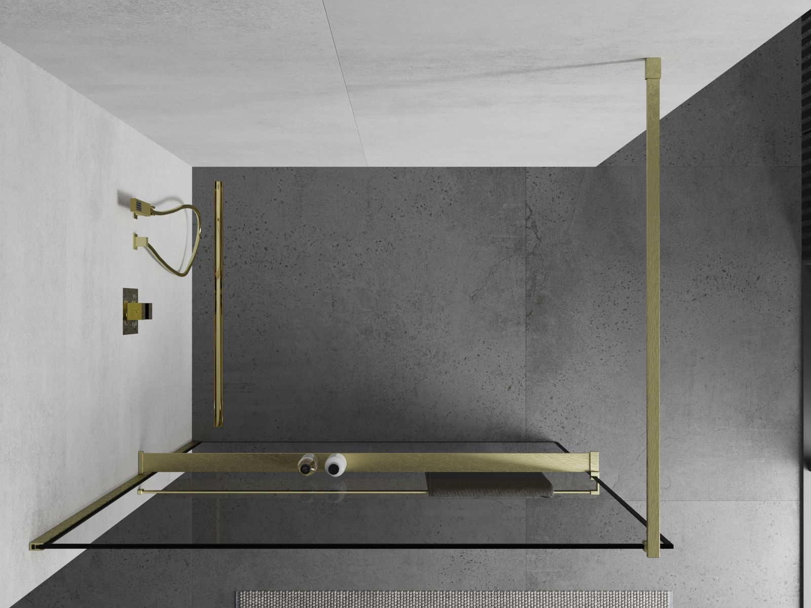 Mexen Kioto+ Πάνελ ντους με ράφι Walk-in 70 x 200 cm, μαύρο πλαίσιο, χρυσό