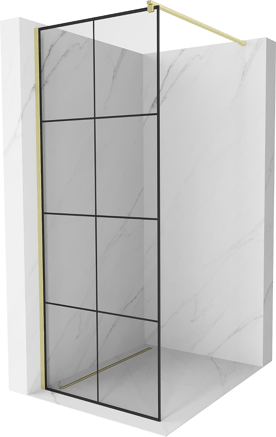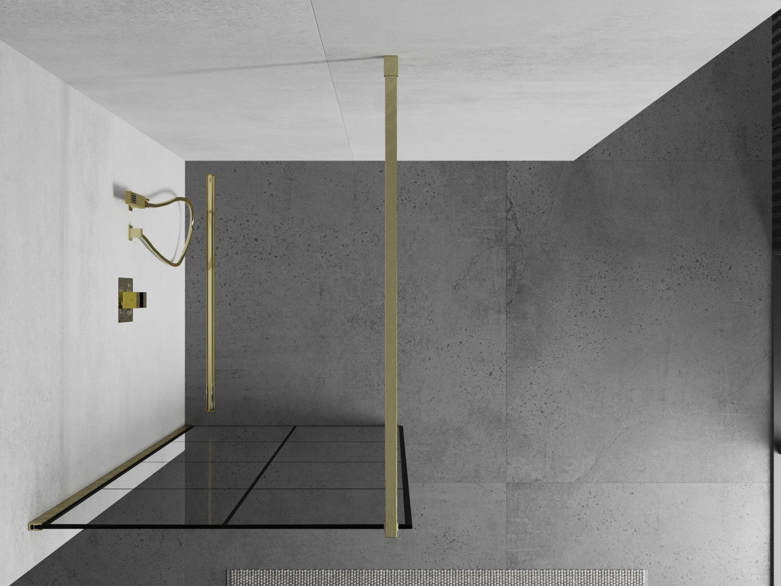 Mexen Kioto Πάνελ ντους Walk-in 70 x 200 cm, μαύρο καρό 8 mm, χρυσό βουρτσισμένο