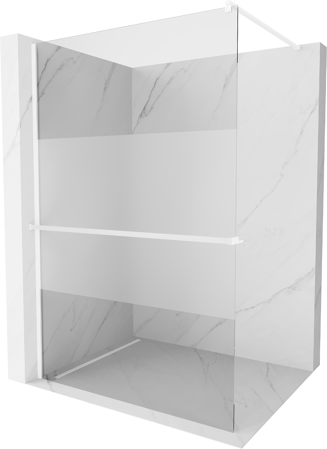 Mexen Kioto+ ντουζιέρα με ράφι Walk-in 80 x 200 cm, διάφανη/παγωμένη, λευκή