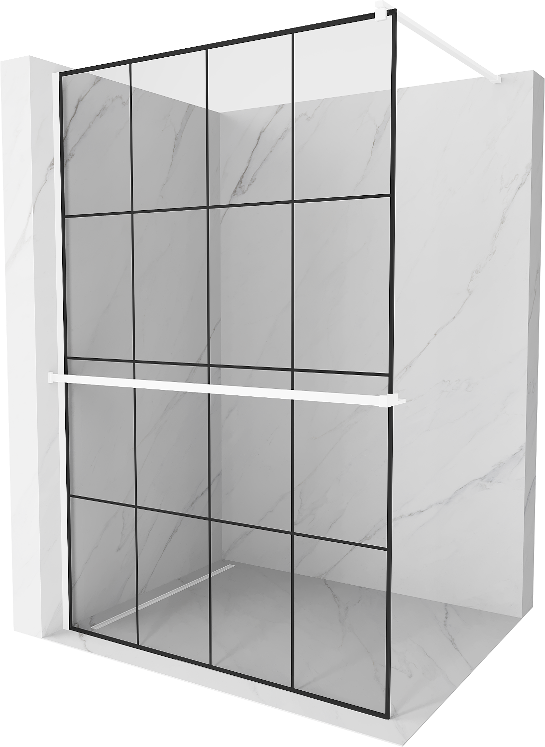 Mexen Kioto+ Πάνελ ντους με ράφι Walk-in 130 x 200 cm, μαύρο καρό, λευκό - 800-130-121-20-77
