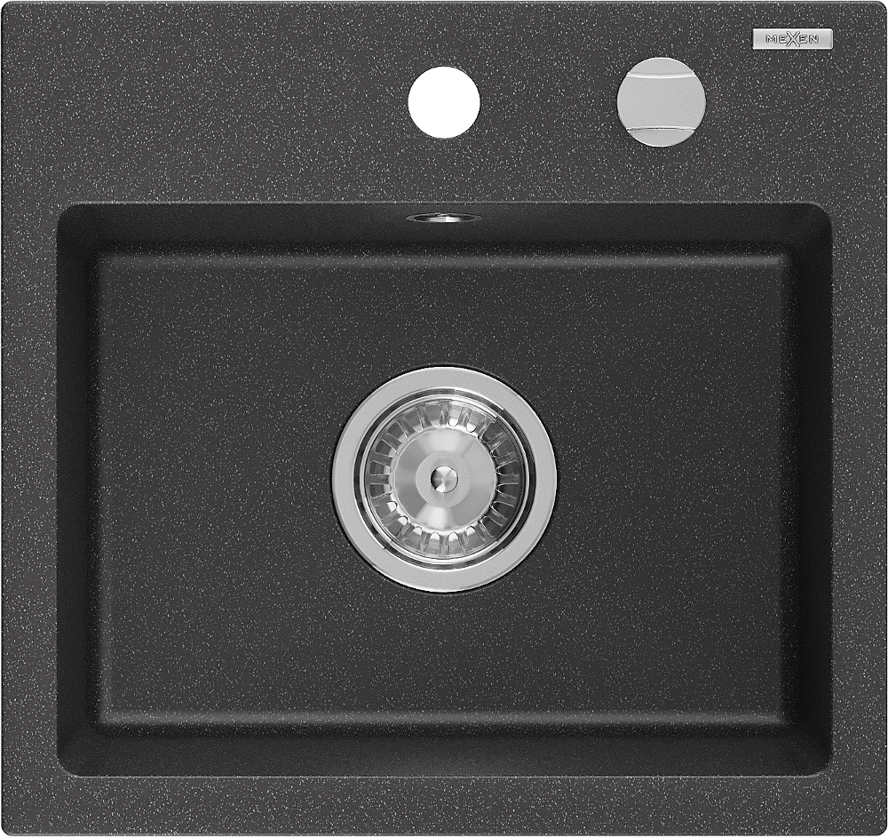 Mexen Milo Νεροχύτης γρανίτης 1-θάλαμος 435 x 410 mm, μαύρο πιτσιλωτό, σιφόνι