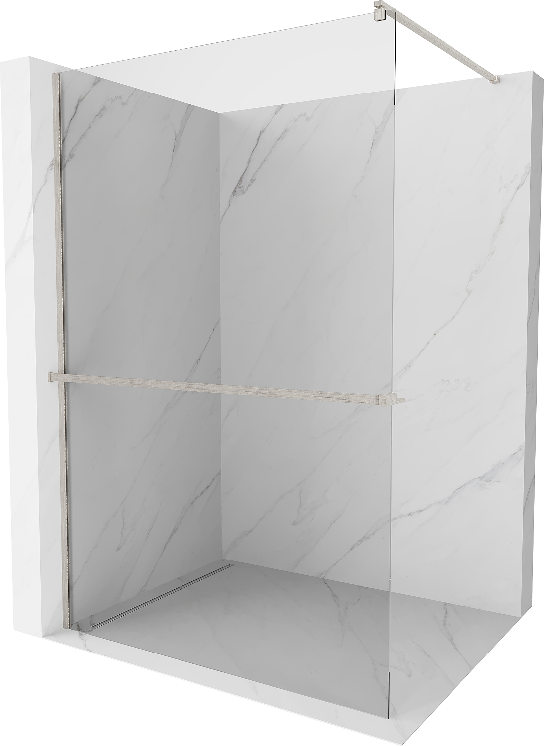 Mexen Kioto+ Πάνελ ντους με ράφι Walk-in 120 x 200 cm, διαφανές, βουρτσισμένο νικέλιο