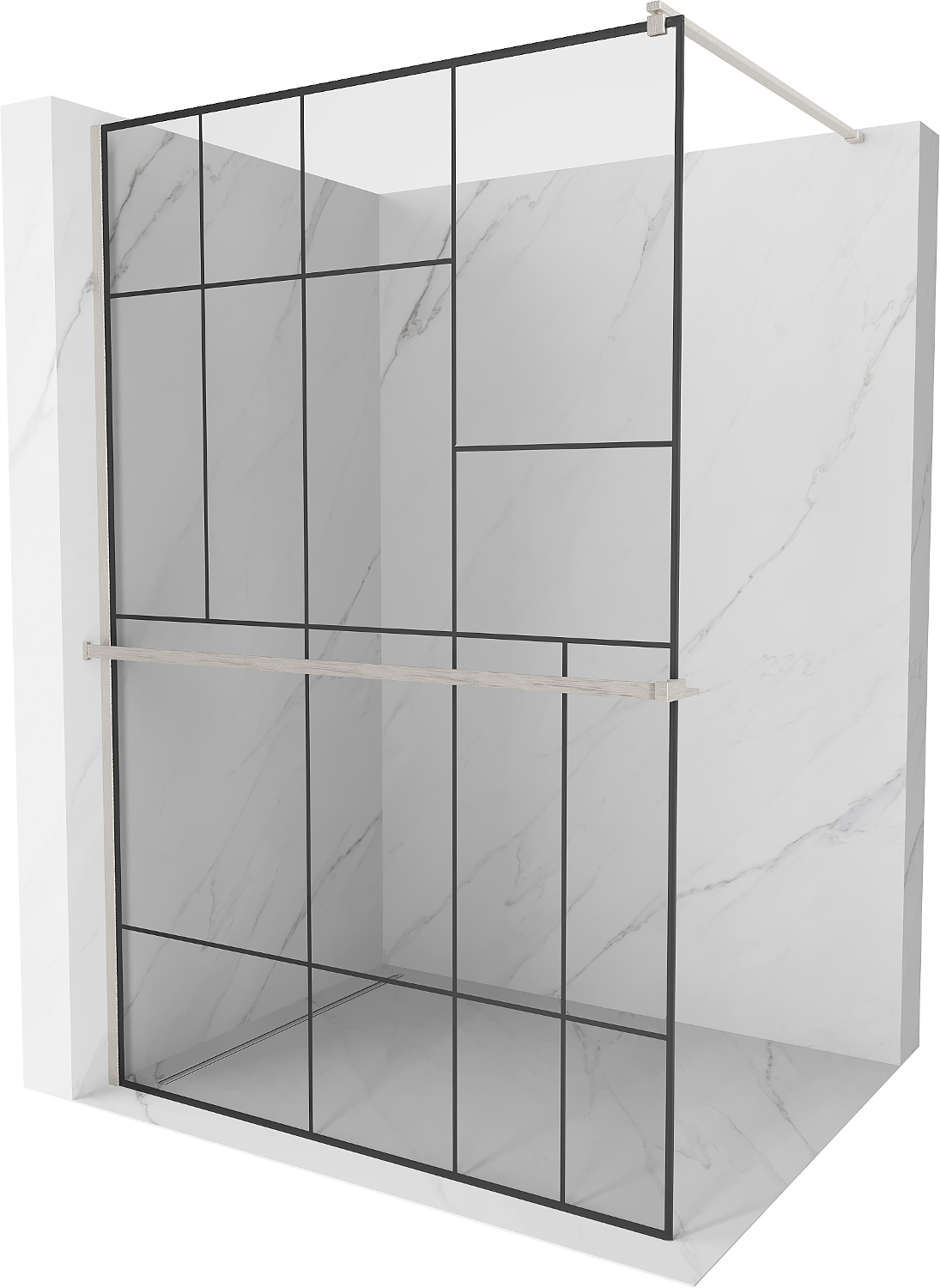 Mexen Kioto+ Σχάρα καμπίνας ντους με ράφι Walk-in 130 x 200 cm, μαύρο σχέδιο,