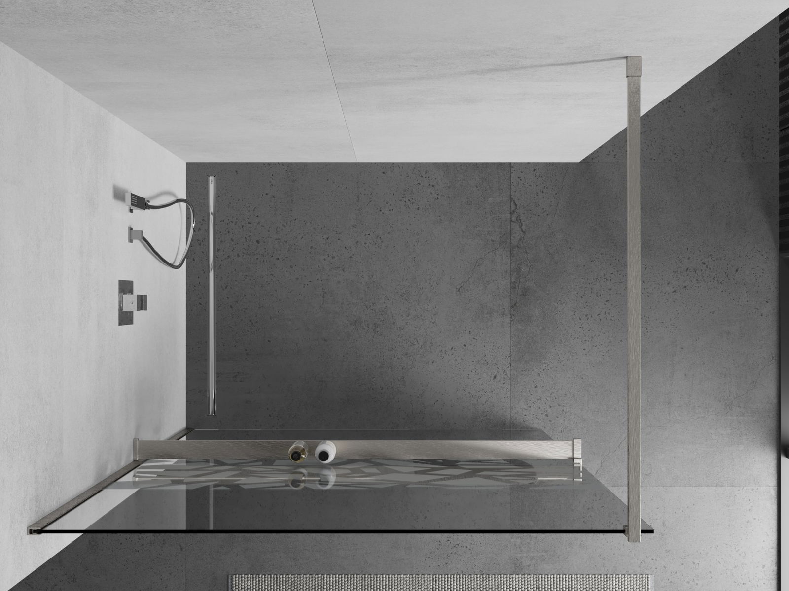 Mexen Kioto+ καμπίνα ντους με ράφι Walk-in 130 x 200 cm, λευκό μοτίβο, βουρτσισμένο