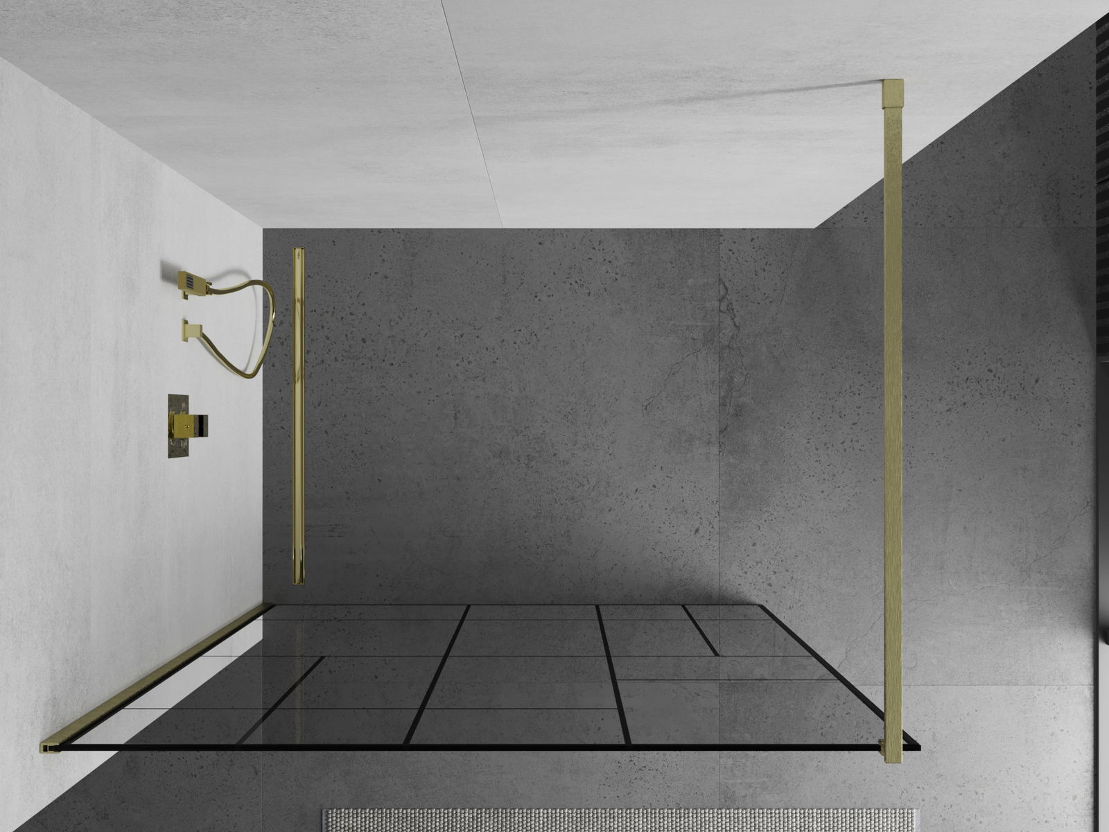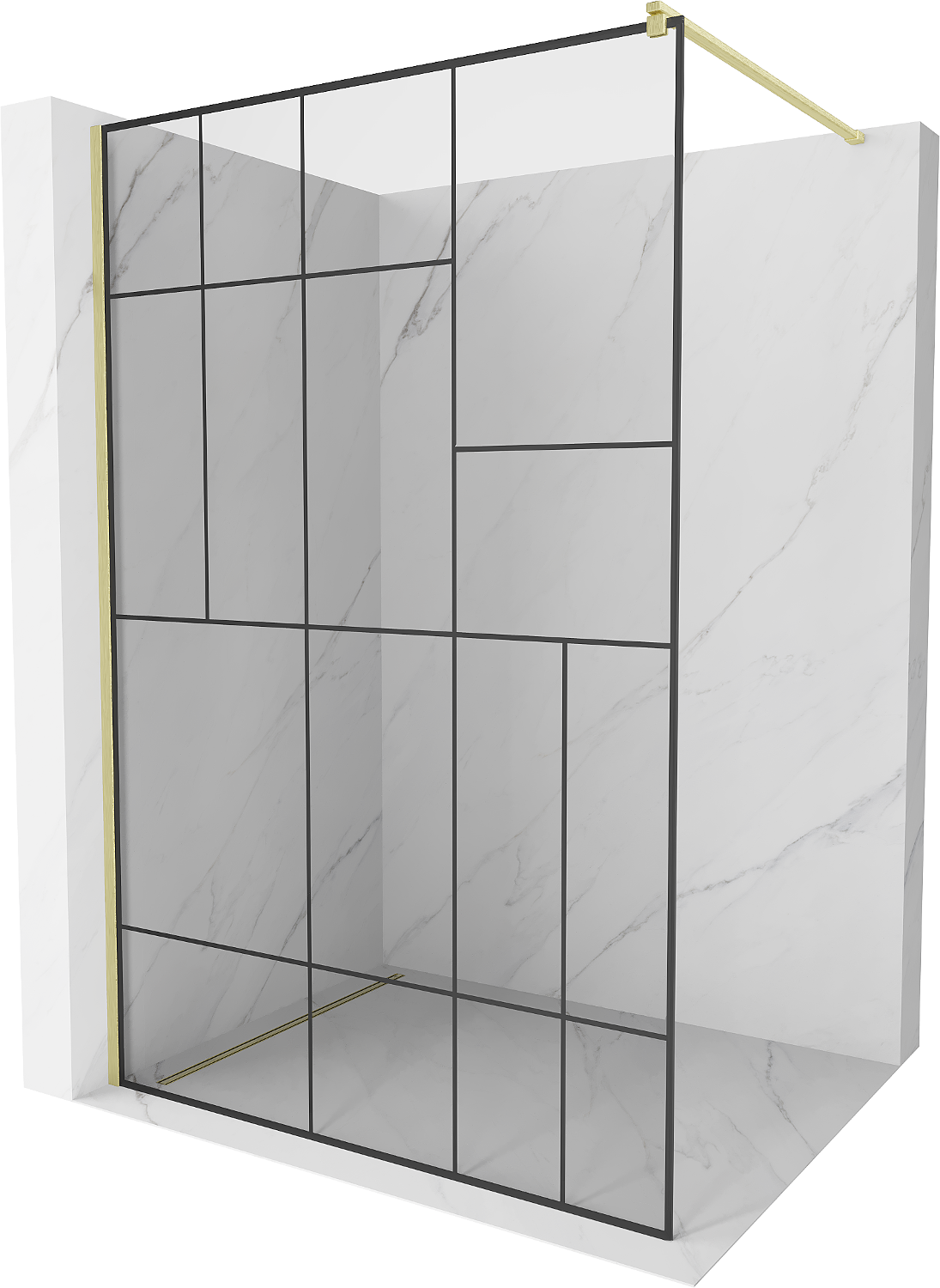 Mexen Kioto Πάνελ ντους Walk-in 70 x 200 cm, μαύρο σχέδιο 8 mm, χρυσό βουρτσισμένο