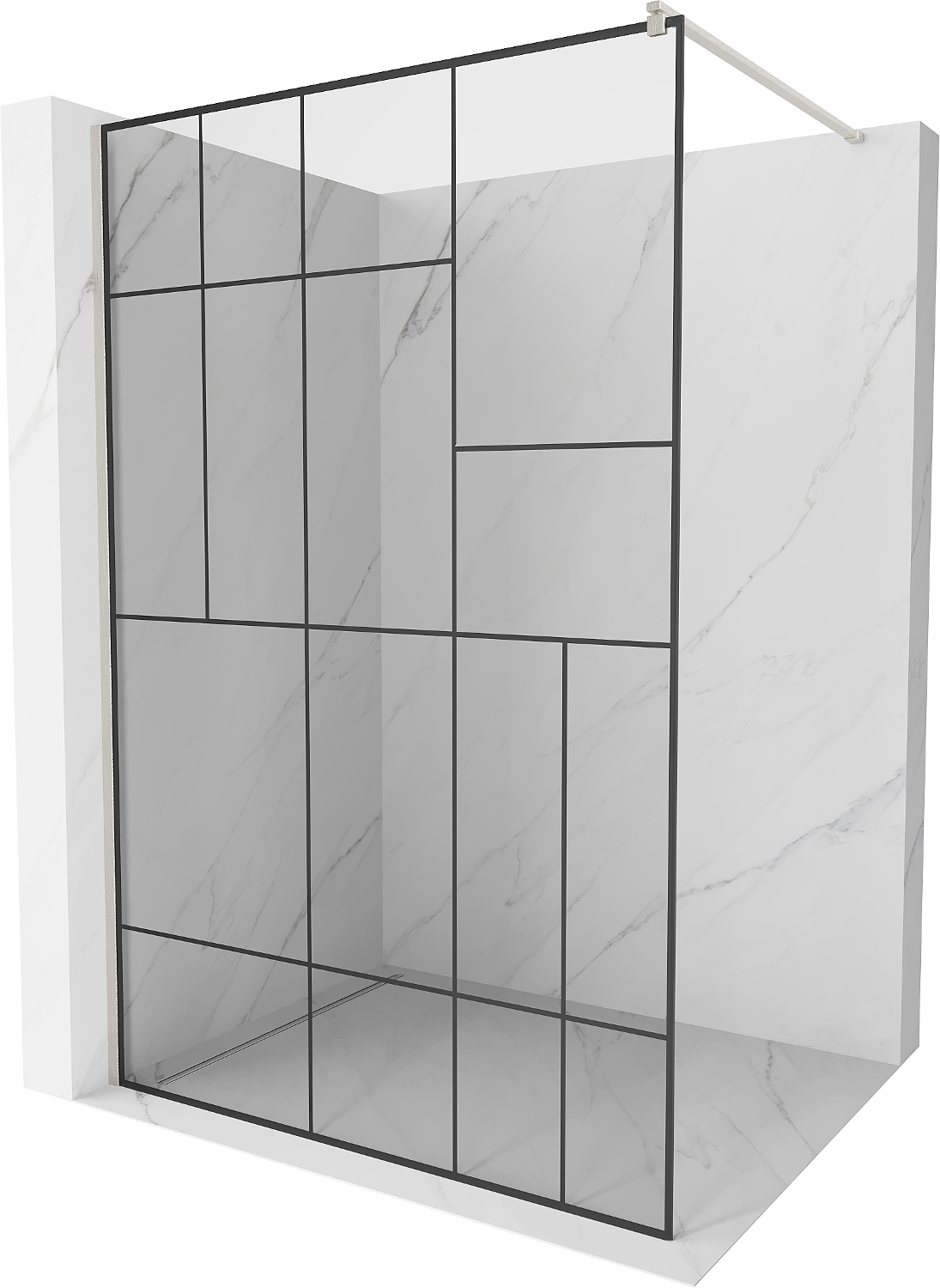 Mexen Kioto Πάνελ ντους Walk-in 80 x 200 cm, μαύρο σχέδιο 8 mm, βουρτσισμένο νικέλιο