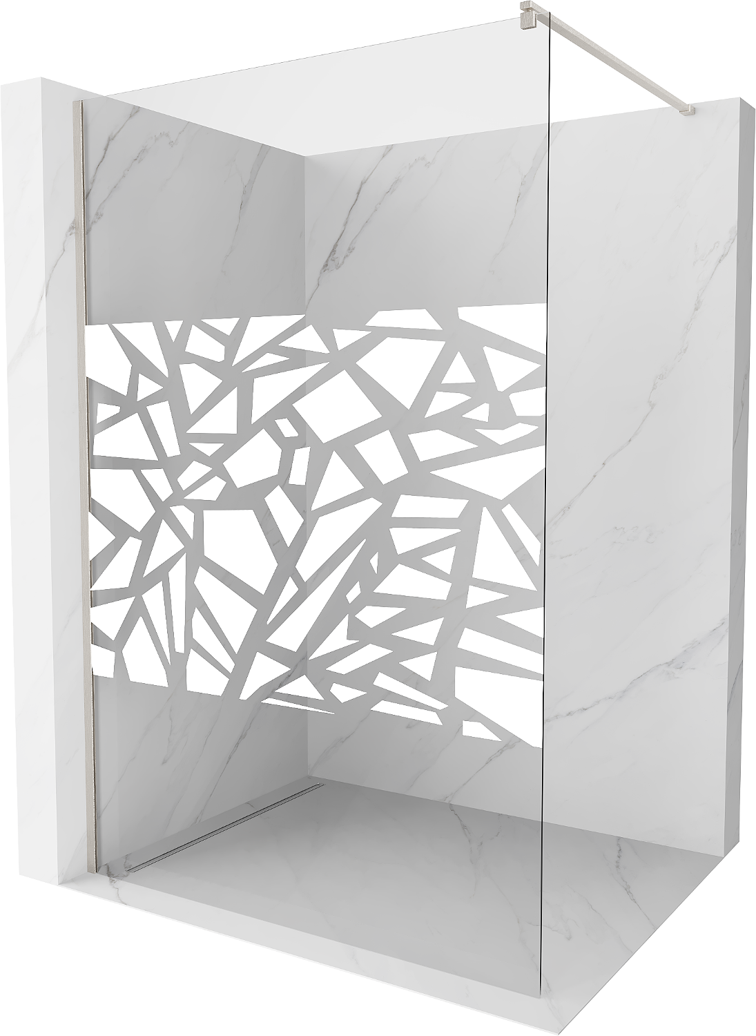 Mexen Kioto οθόνη ντους Walk-in 130 x 200 cm, λευκό μοτίβο 8 mm, βουρτσισμένο νικέλιο