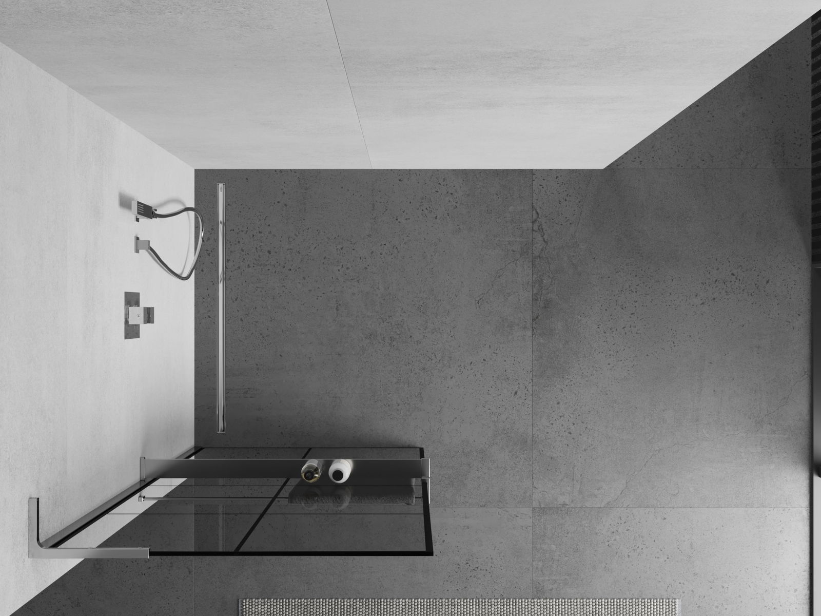 Mexen Kioto+ L καμπίνα ντους με ράφι Walk-in 80 x 200 cm, μαύρο καρό, χρώμιο