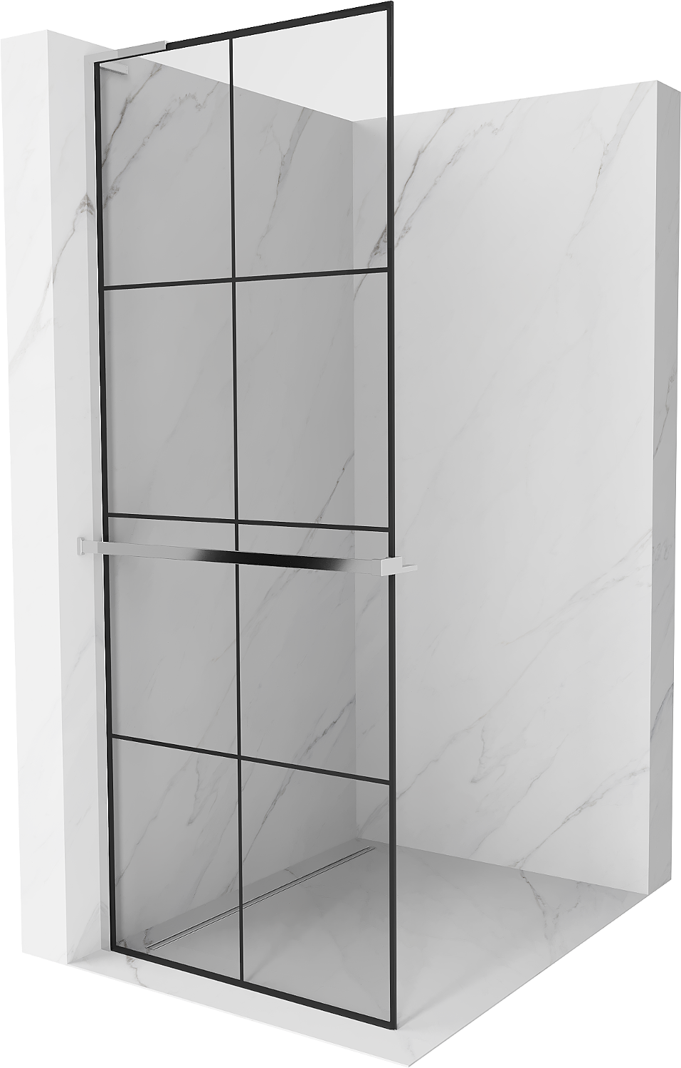Mexen Kioto+ L τοίχωμα ντους με ράφι Walk-in 90 x 200 cm, μαύρο καρό, χρώμιο