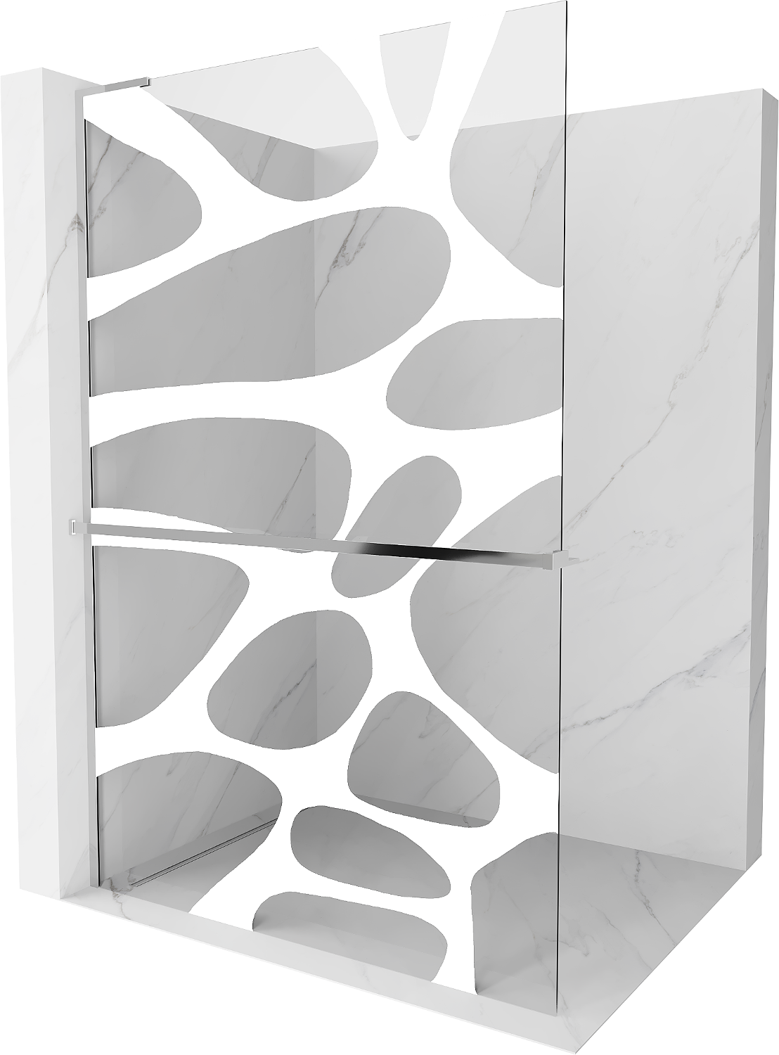 Mexen Kioto+ L τοίχος ντους με ράφι Walk-in 100 x 200 cm, λευκό κύμα, χρωμίου