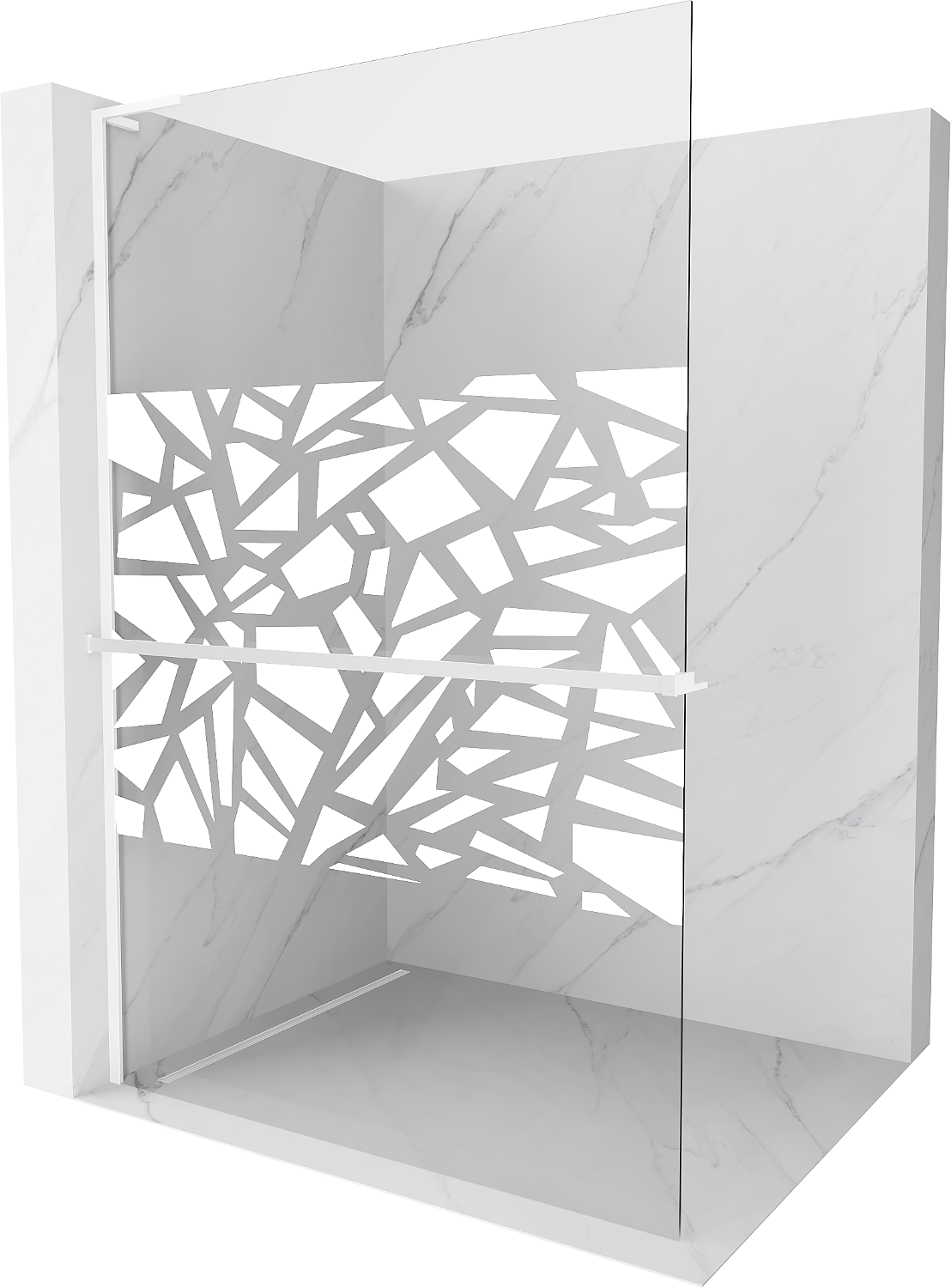 Mexen Kioto+ L τοιχίο ντους με ράφι Walk-in 110 x 200 cm, λευκό σχέδιο, λευκό