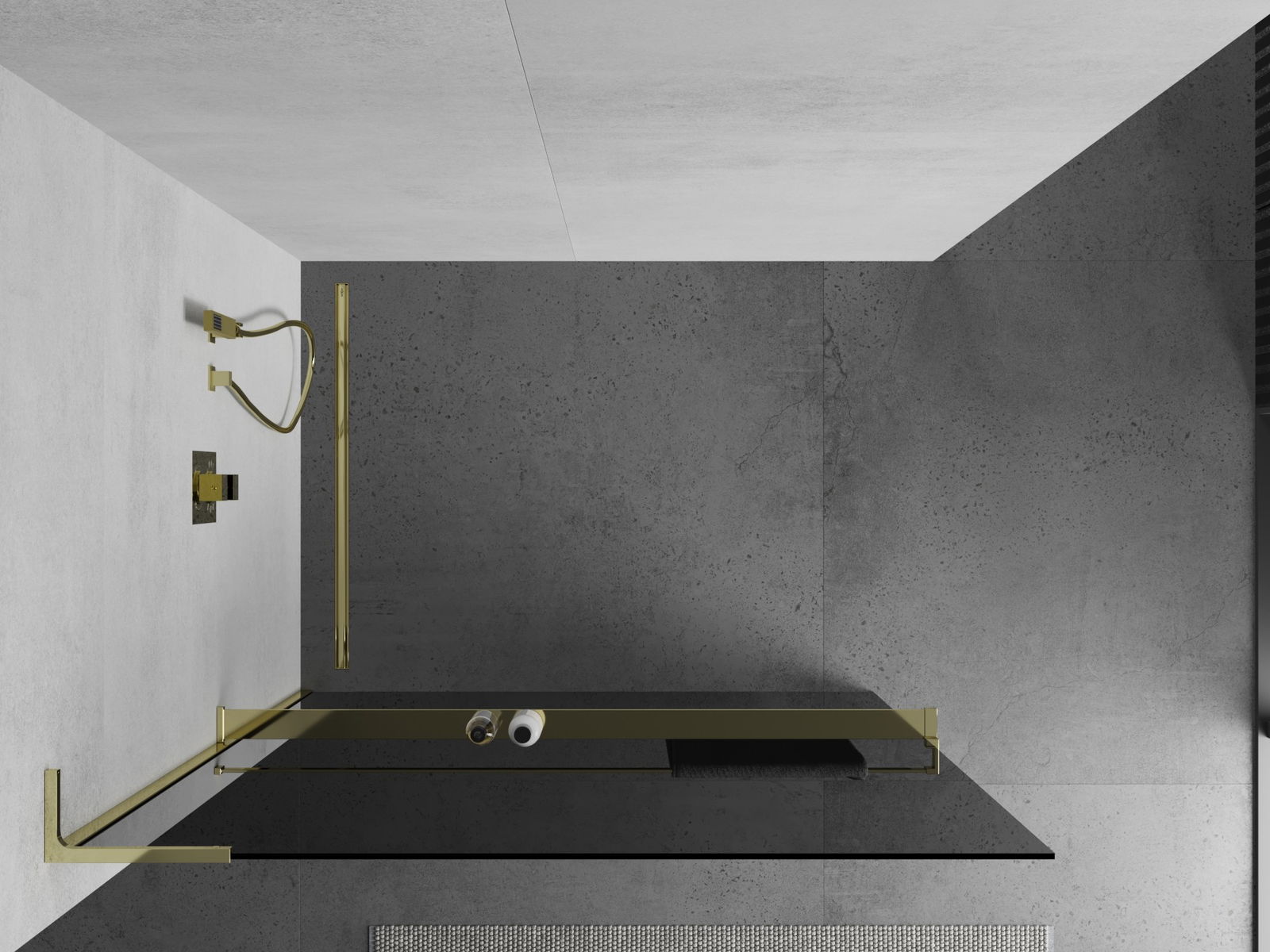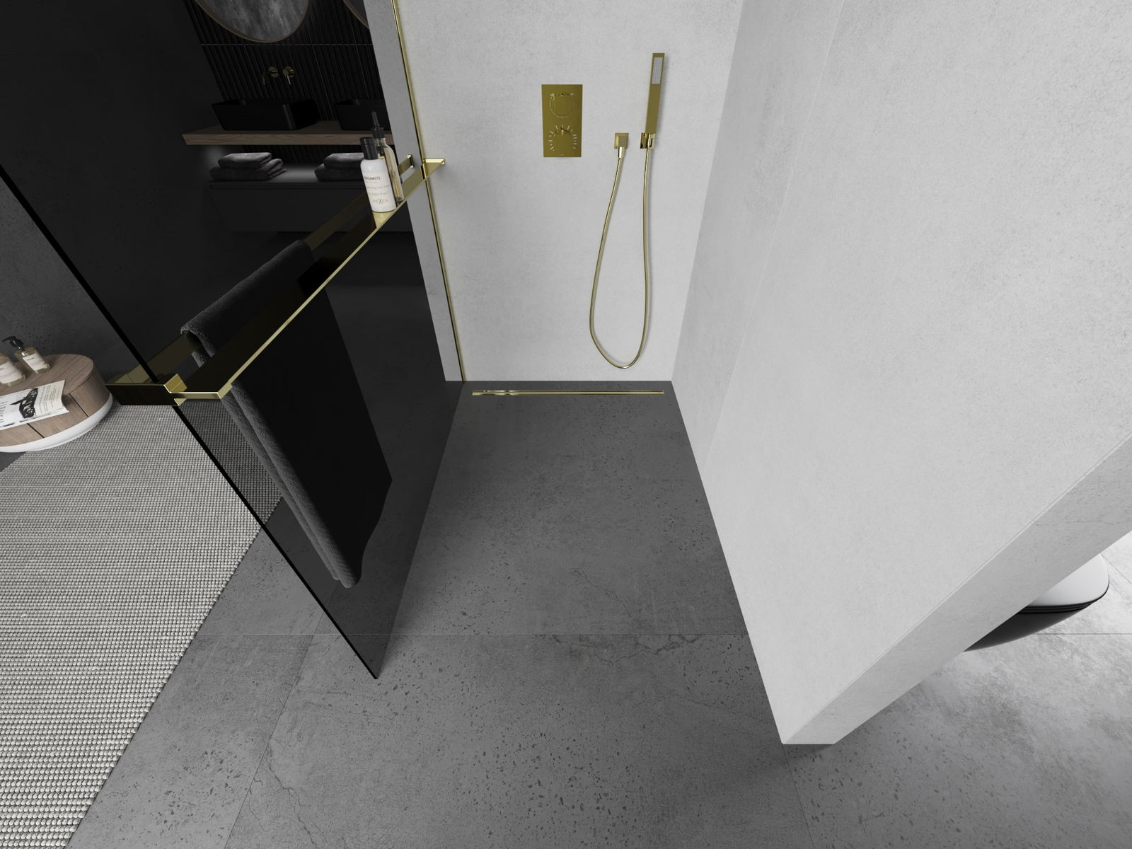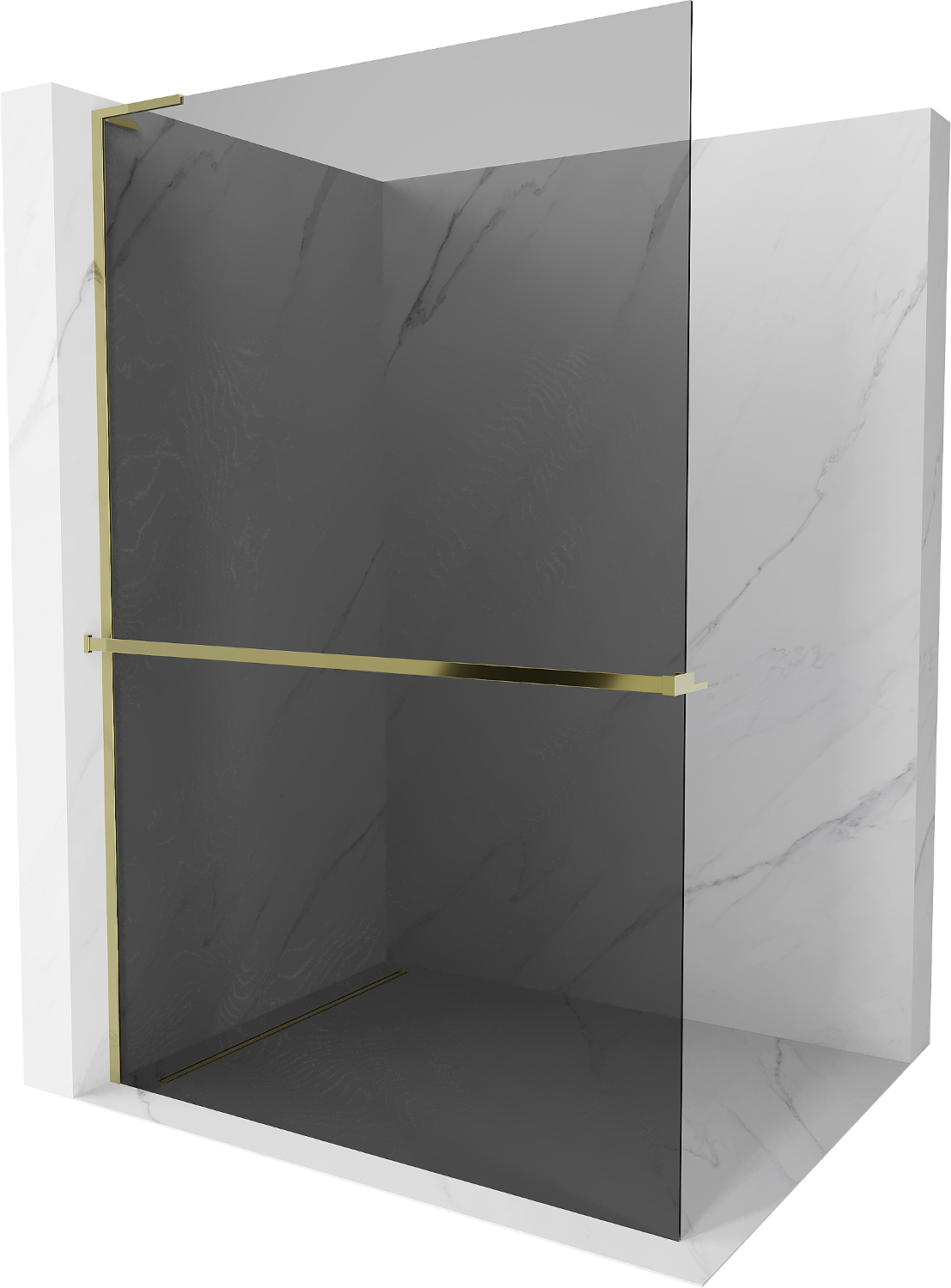 Mexen Kioto+ L διαχωριστικό ντους με ράφι Walk-in 80 x 200 cm, γραφίτης, χρυσό