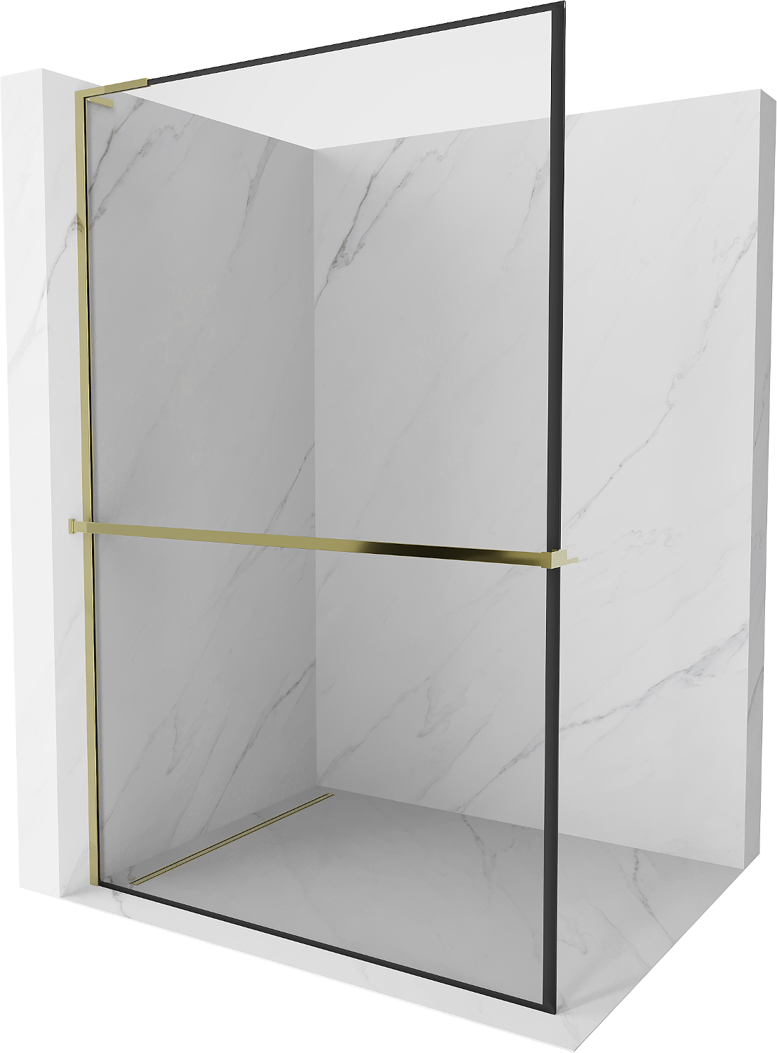 Mexen Kioto+ L Πάνελ ντους με ράφι Walk-in 100 x 200 cm, μαύρο πλαίσιο, χρυσό