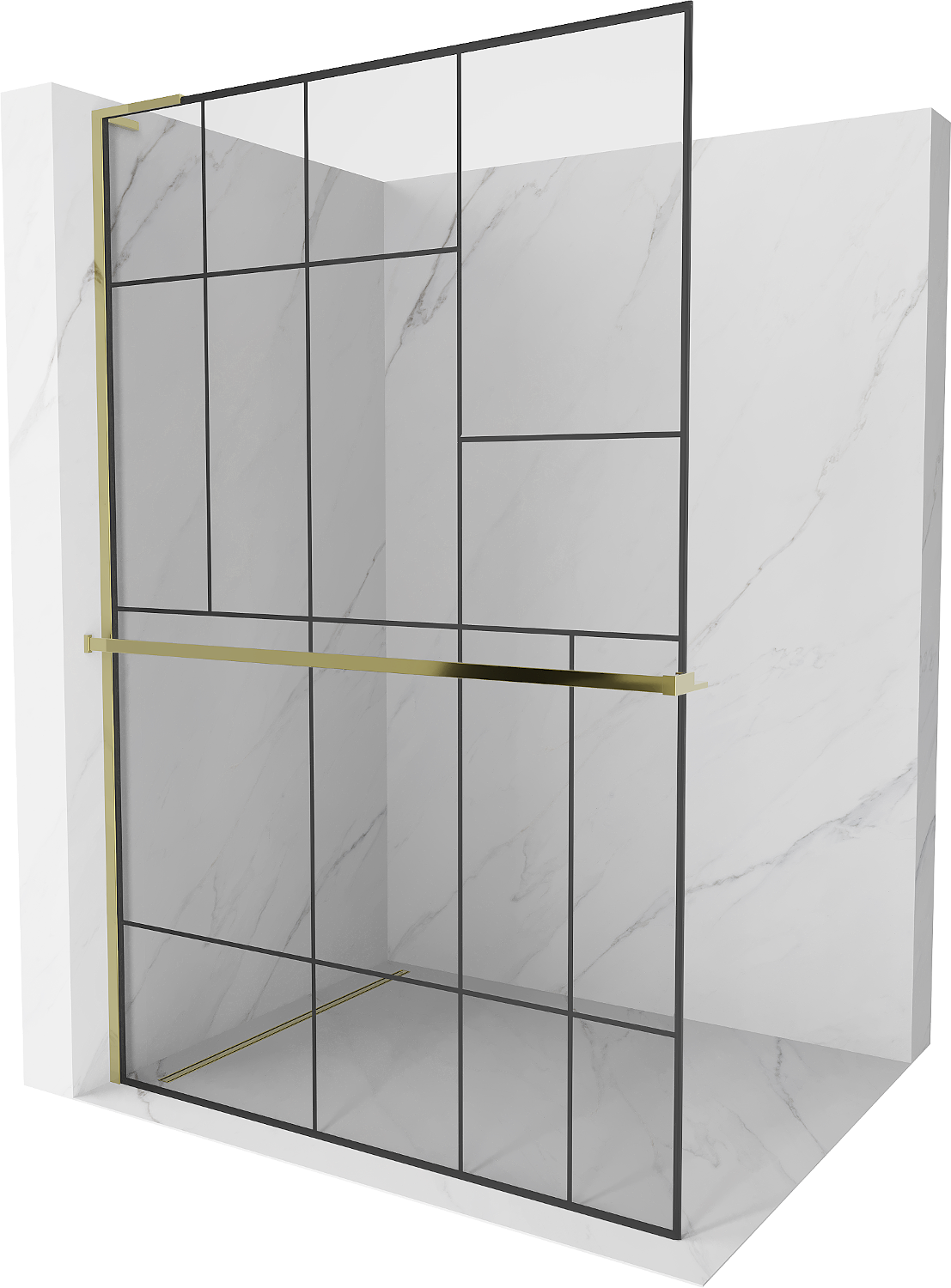 Mexen Kioto+ L Σκιάδια ντους με ράφι Walk-in 110 x 200 cm, μαύρο σχέδιο, χρυσό