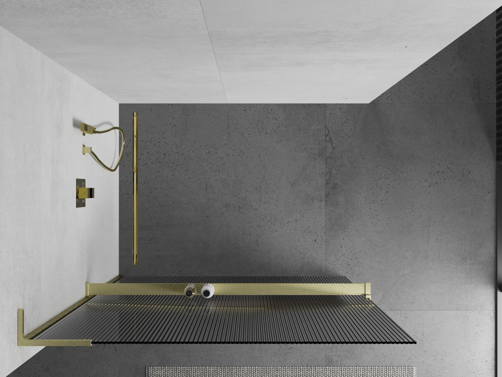 Mexen Kioto+ L πλαϊνό ντους με ράφι Walk-in 100 x 200 cm, ραβδώσεις, χρυσό