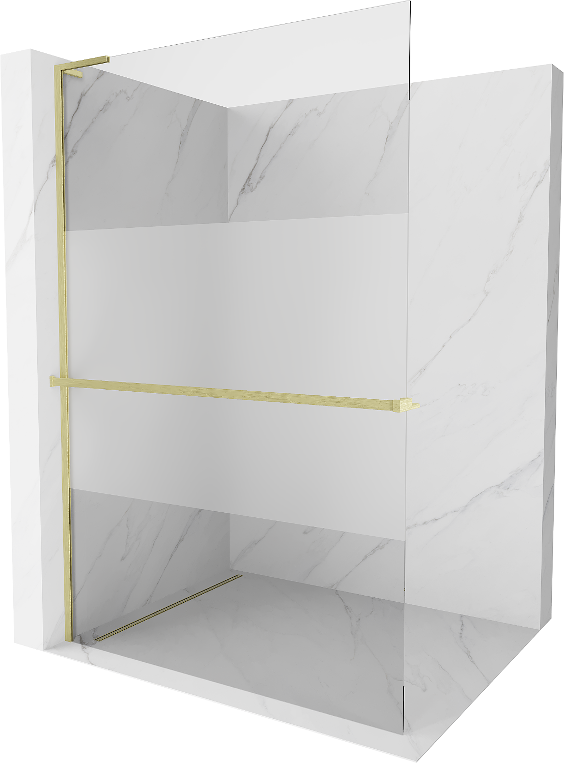 Mexen Kioto+ L καμπίνα ντους με ράφι Walk-in 110 x 200 cm, διαφανές/παγετό, χρυσό