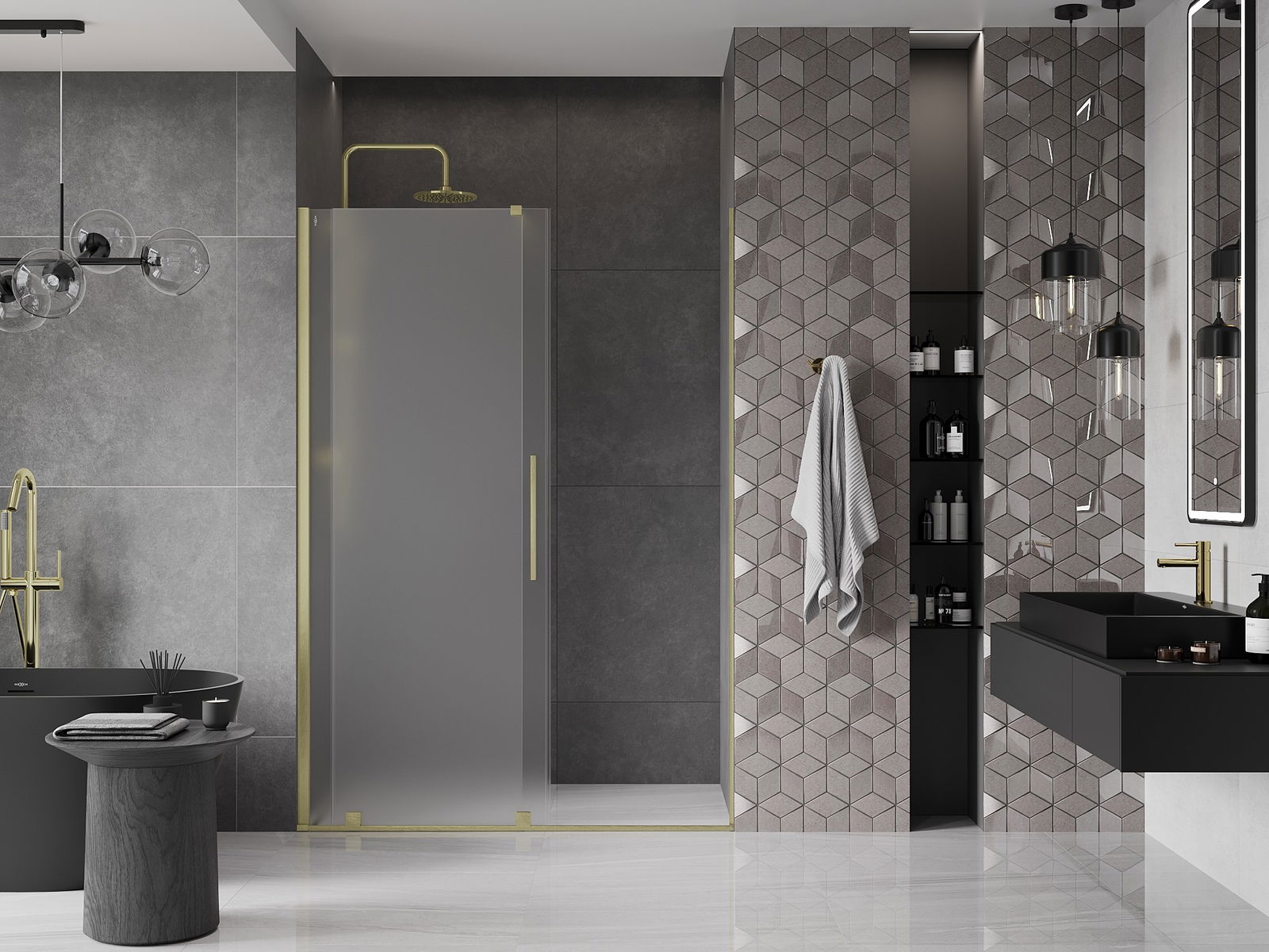 Η πρακτική και άνετη λαβή είναι κατασκευασμένη από ανοξείδωτο ατσάλι. Ο μοντέρνος σχεδιασμός σε συνδυασμό με το φινίρισμα που ταιριάζει με το χρώμα των προφίλ προσδίδει συνολικά μια σύγχρονη και στυλάτη εμφάνιση, υπογραμμίζοντας την αισθητική κάθε μπάνιου.
