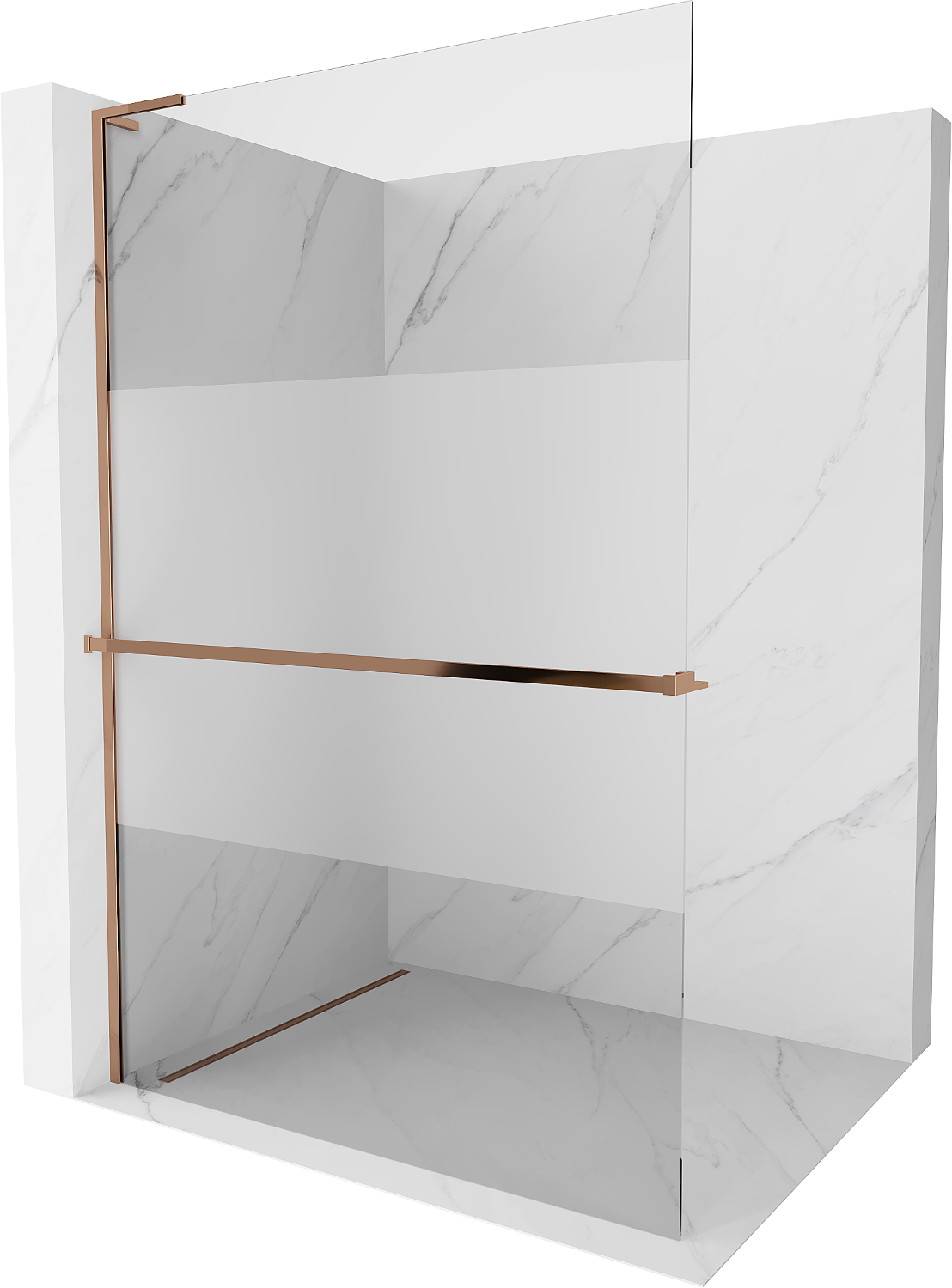 Mexen Kioto+ L Πάνελ ντους με ράφι Walk-in 80 x 200 cm, διαφανές/παγετό, ροζ χρυσό