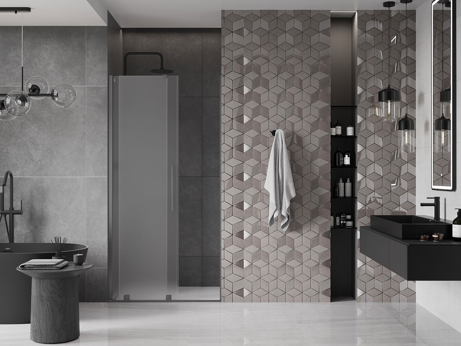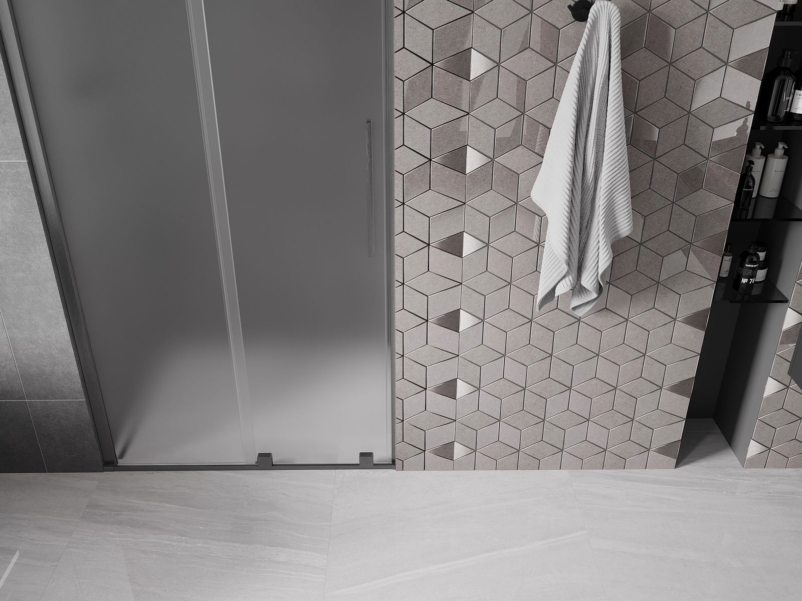 Η πρακτική και άνετη λαβή είναι κατασκευασμένη από ανοξείδωτο ατσάλι. Ο μοντέρνος σχεδιασμός σε συνδυασμό με το φινίρισμα που ταιριάζει με το χρώμα των προφίλ προσδίδει συνολικά μια σύγχρονη και στυλάτη εμφάνιση, υπογραμμίζοντας την αισθητική κάθε μπάνιου.