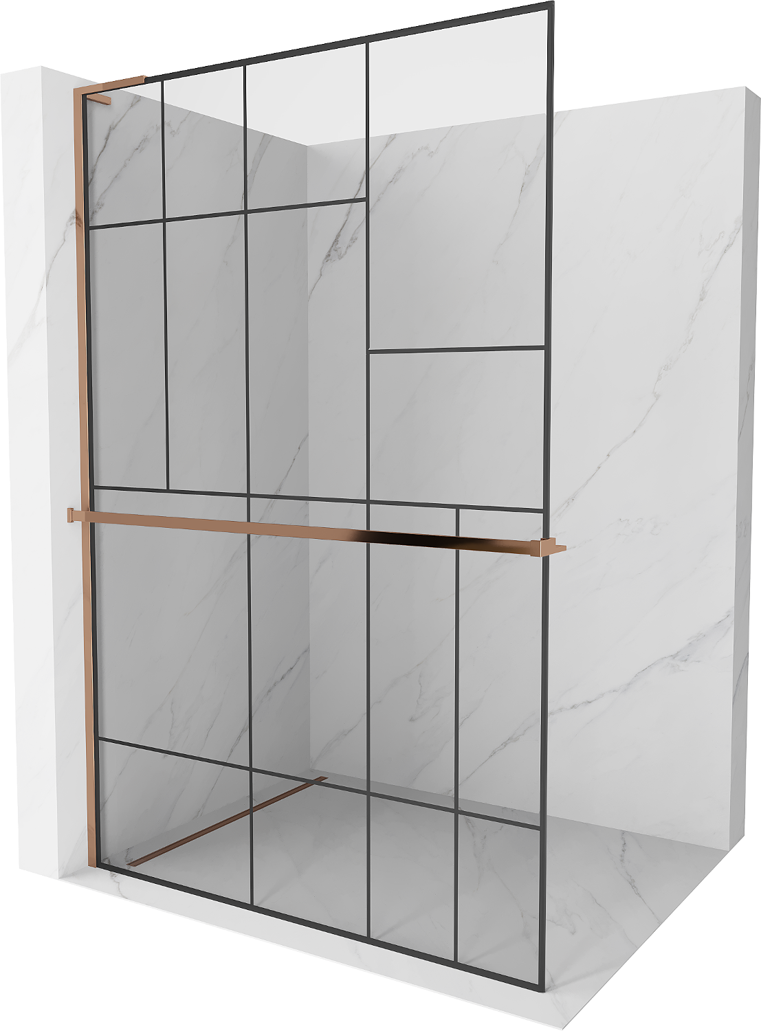 Mexen Kioto+ L Πάνελ ντους με ράφι Walk-in 120 x 200 cm, μαύρο μοτίβο, ροζ χρυσό
