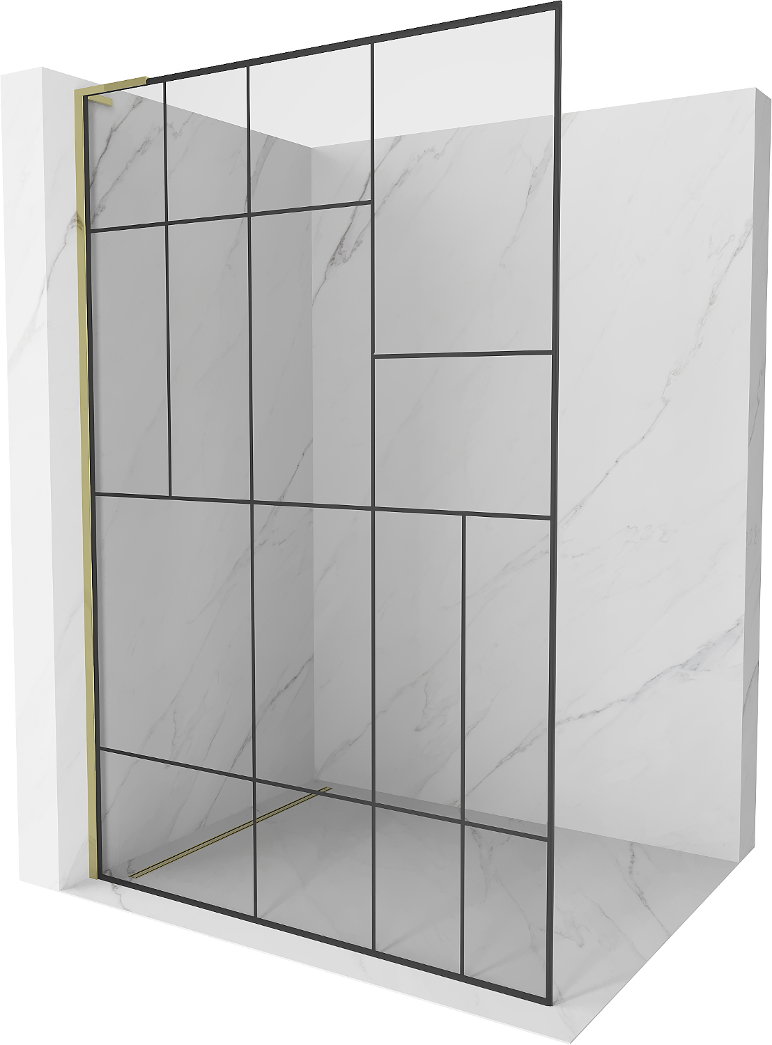 Mexen Kioto L Πάνελ ντους Walk-in 70 x 200 cm, μαύρο μοτίβο, χρυσό - 800-070-103-50-78