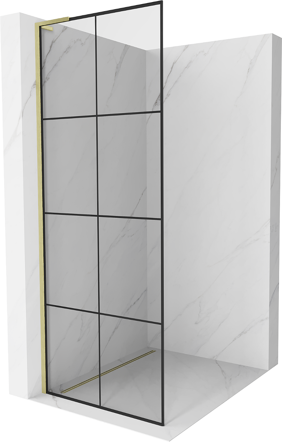 Mexen Kioto L πλαϊνό ντους Walk-in 70 x 200 cm, μαύρο καρό, χρυσό βουρτσισμένο