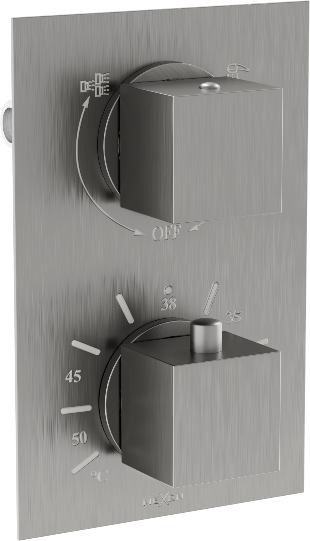Mexen Cube θερμοστατική μπαταρία μπάνιου-ντουζιέρας 2 εξόδων, γραφίτης