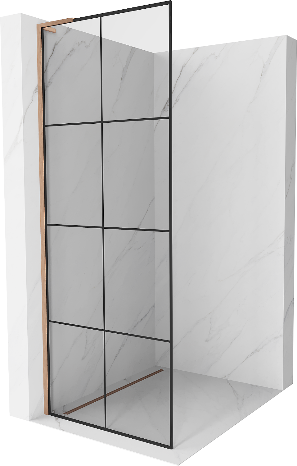 Mexen Kioto L Πάνελ ντους Walk-in 70 x 200 cm, μαύρο καρό, βουρτσισμένο χαλκός