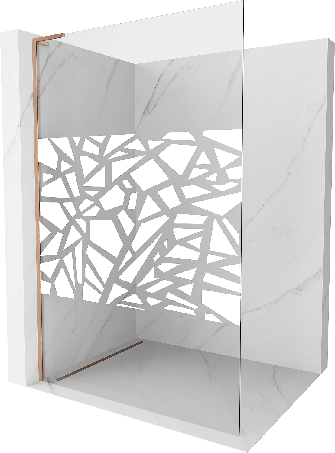 Mexen Kioto L καμπίνα ντους Walk-in 70 x 200 cm, λευκό σχέδιο, βουρτσισμένος χαλκός