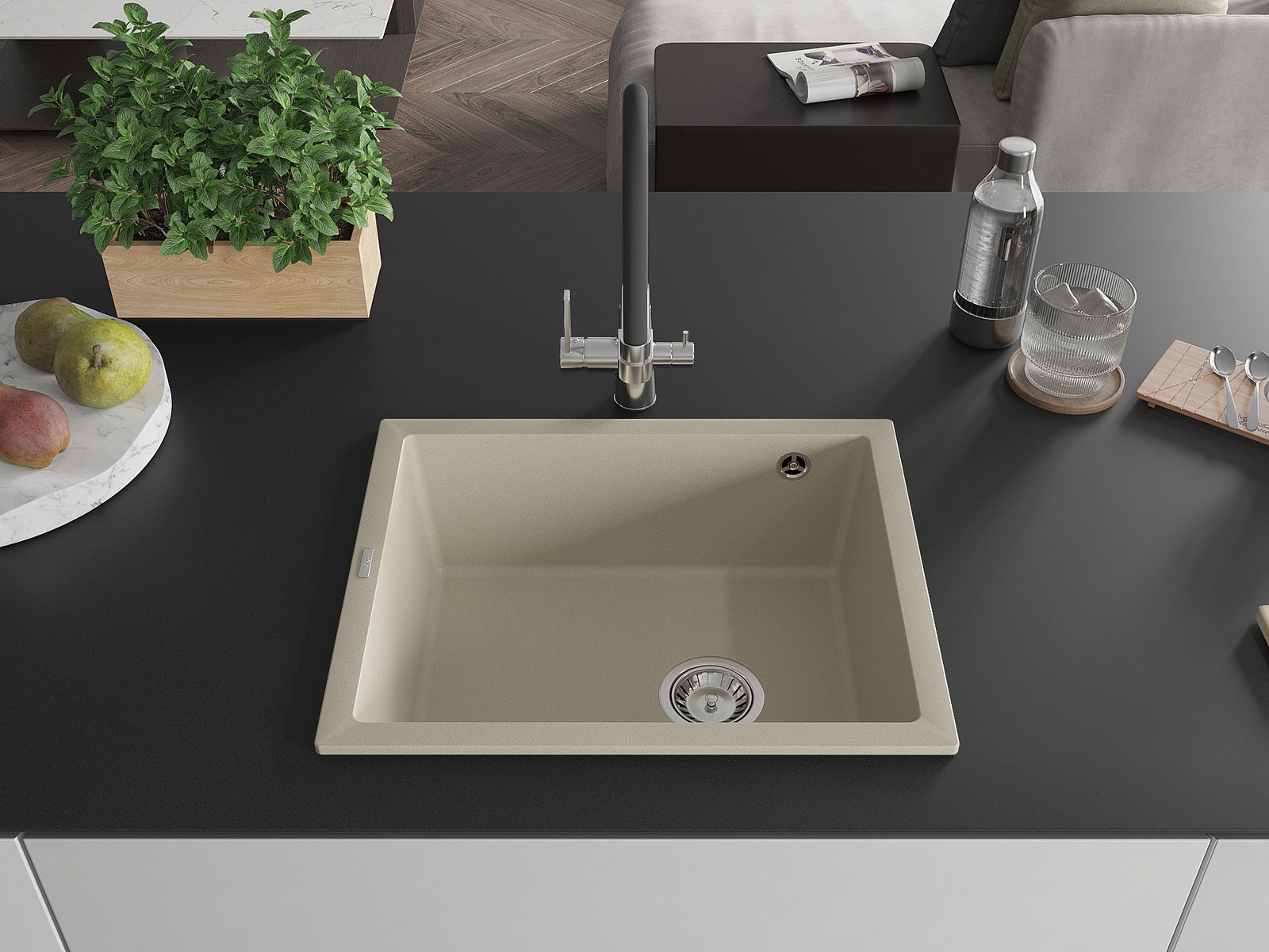 Ο νεροχύτης κατασκευάστηκε από υψηλής ποιότητας γρανίτη. Αποτελεί μια κομψή, και κυρίως πρακτική προσθήκη για κάθε κουζίνα, ανεξάρτητα από το στυλ της. Η υψηλή ποιότητα και η αντοχή του γρανίτη εξασφαλίζουν πολυετή χρήση.