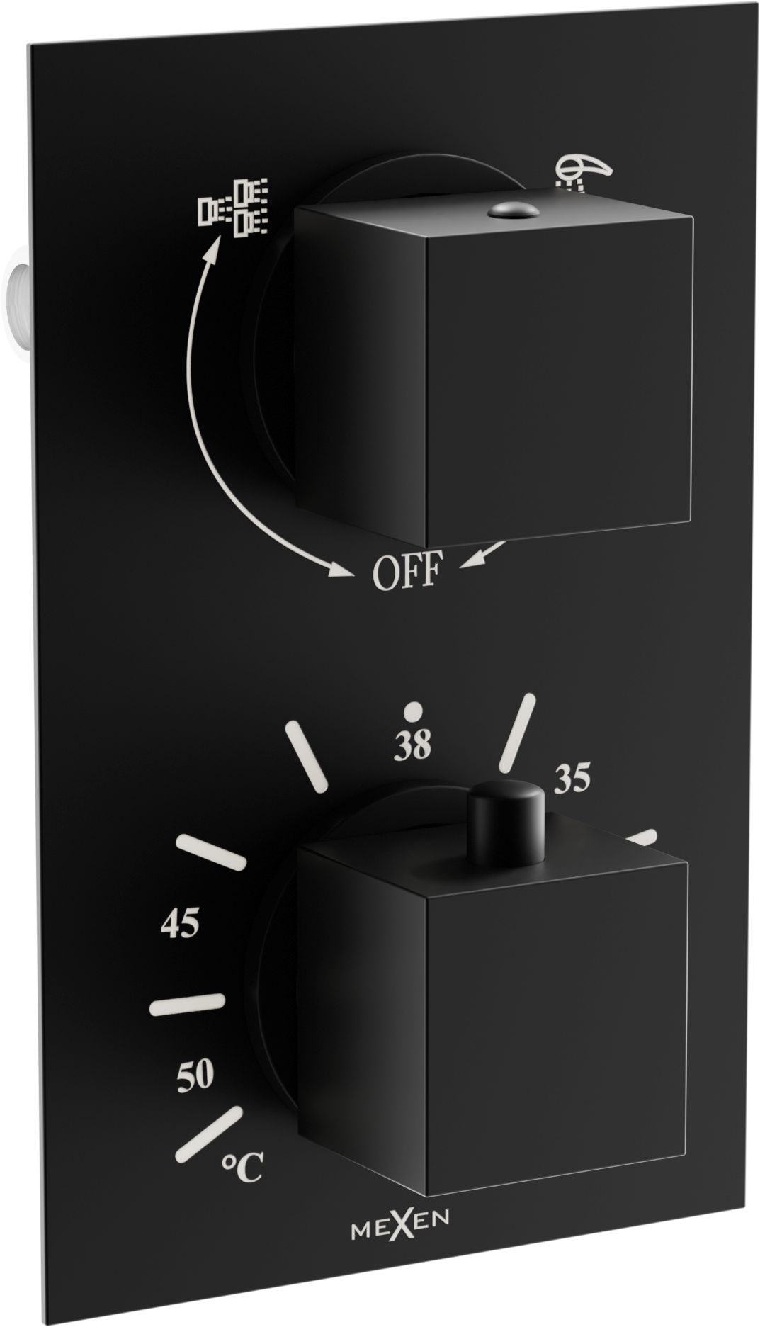 Mexen Cube θερμοστατική μπαταρία μπάνιου-ντους 2 εξόδων, μαύρη - 77502-70