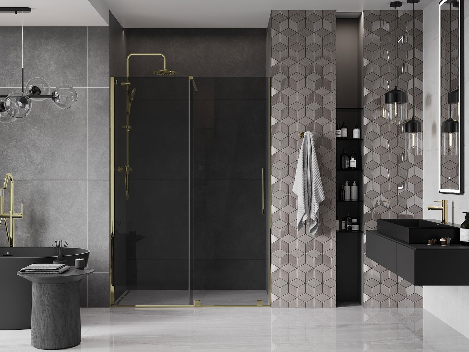 Mexen Velar συρόμενη πόρτα ντους 140 cm, γραφίτης, χρυσό - 871-140-000-41-50