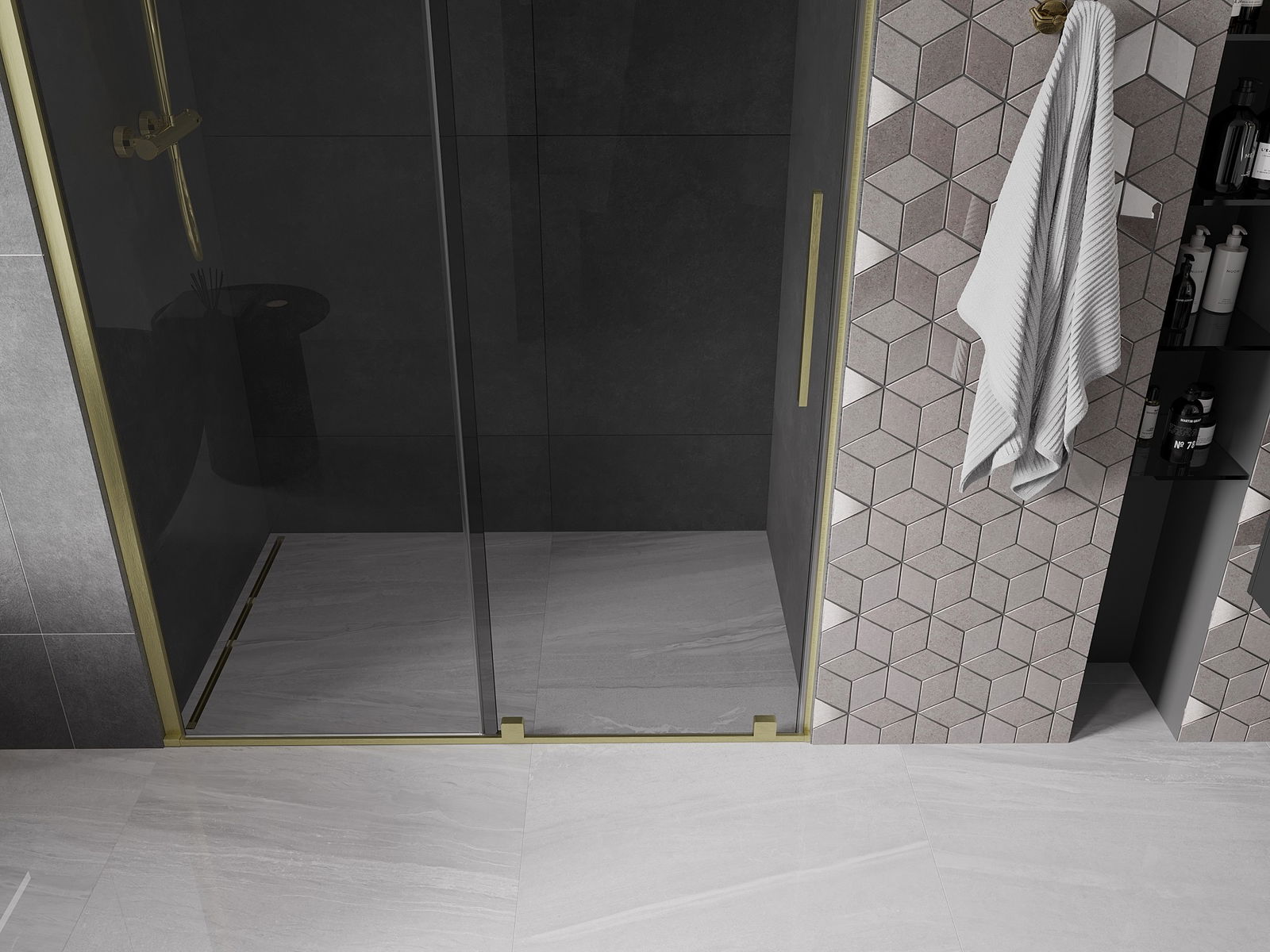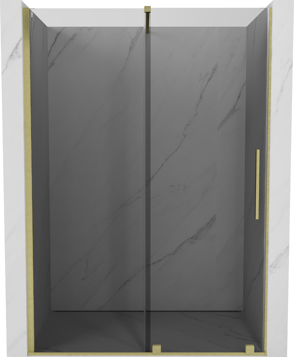 Mexen Velar συρόμενη πόρτα ντους 130 cm, γραφίτης, χρυσό βουρτσισμένο