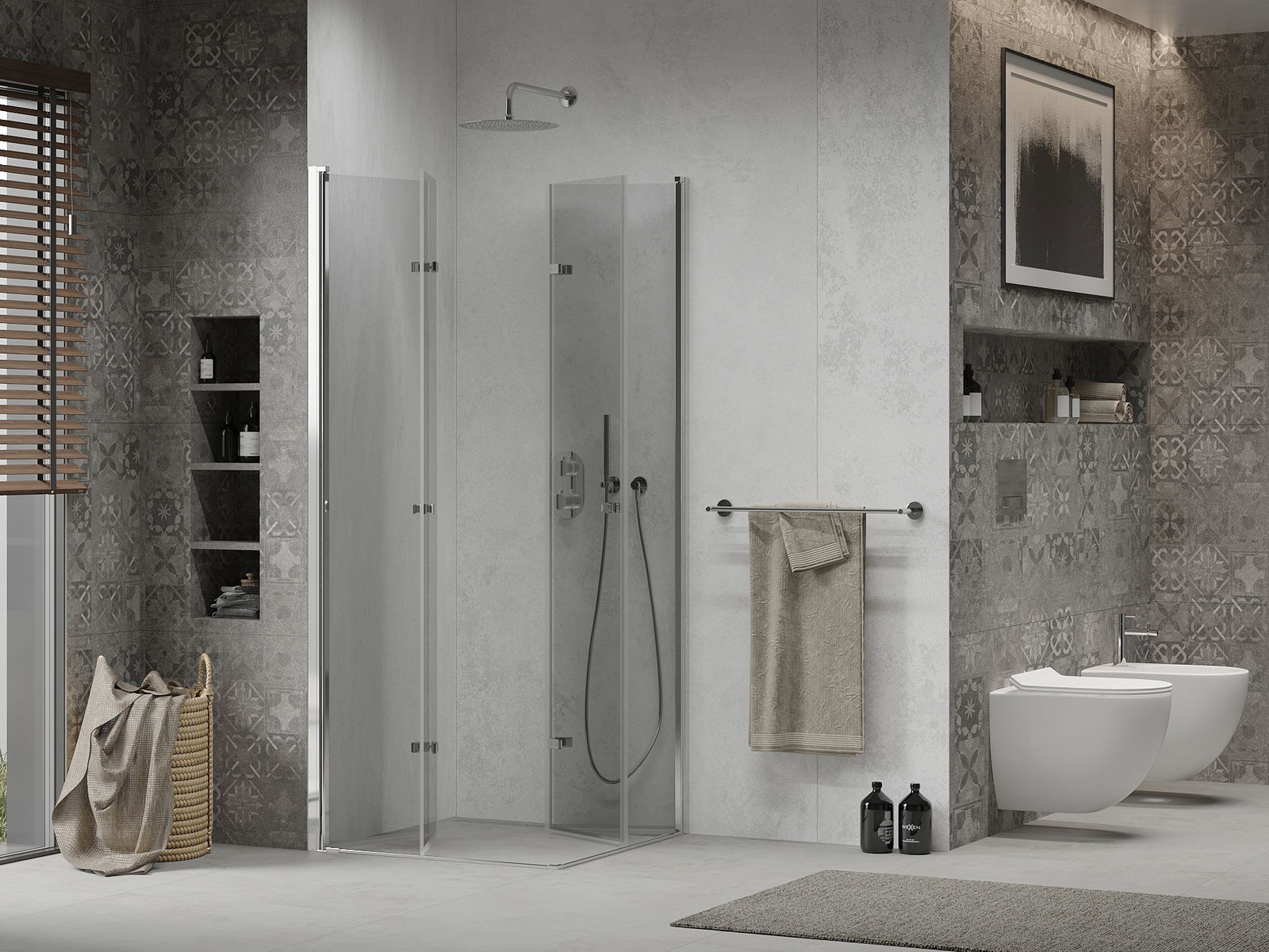 Χάρη στη δυνατότητα αναδίπλωσης της πόρτας, τόσο προς τα έξω όσο και προς τα μέσα, κερδίζουμε πολύ περισσότερο χώρο όταν δεν χρησιμοποιούμε το ντους. Είναι η ιδανική λύση για μικρά μπάνια.