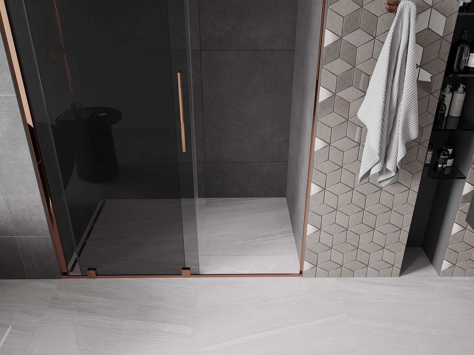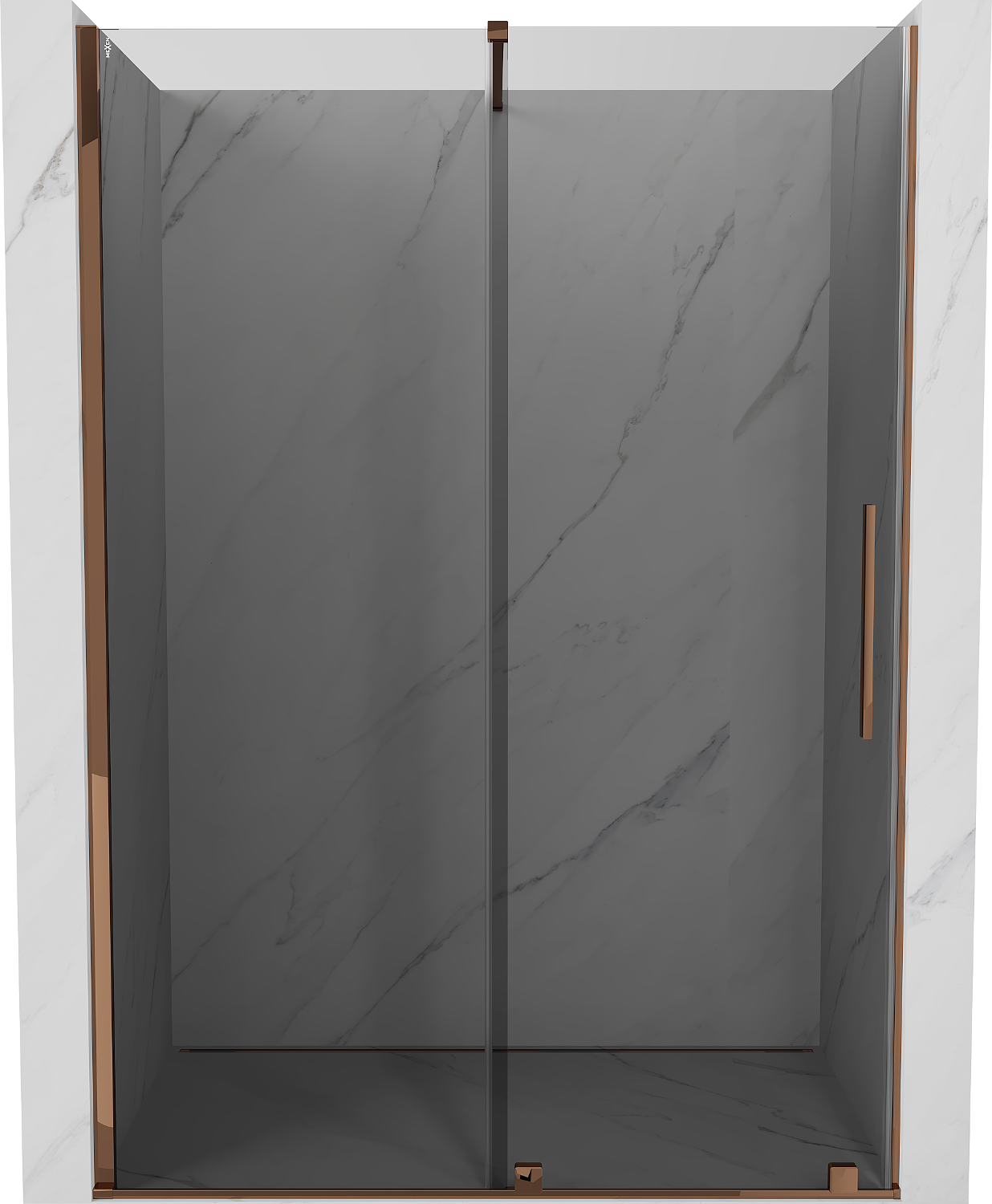 Mexen Velar συρόμενη πόρτα ντους 130 cm, γραφίτης, ροζ χρυσό - 871-130-000-41-60