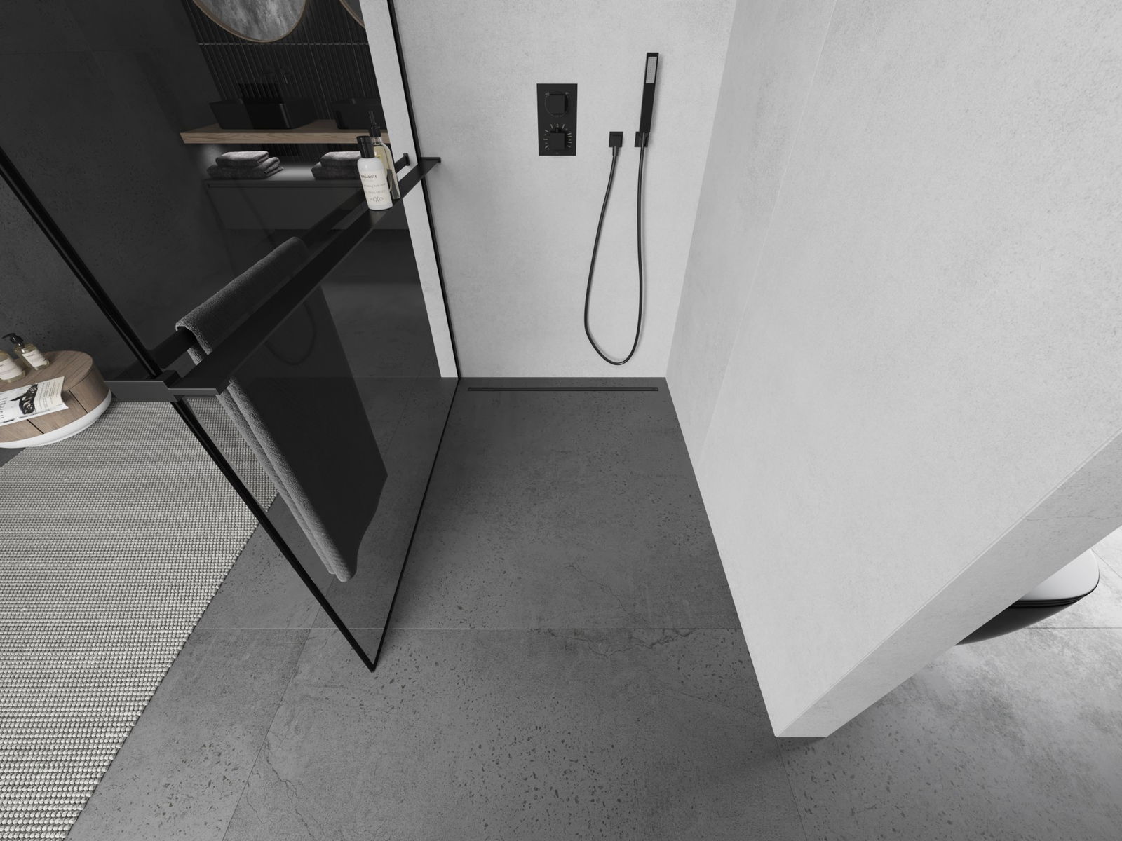 Mexen Kioto+ L πάνελ ντους με ράφι Walk-in 60 x 200 cm, μαύρο πλαίσιο, μαύρο